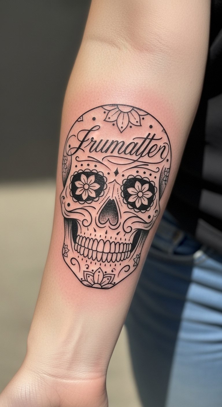 Make it yours by adding a name. Fit it into the skull’s face. Choose your forearm for visibility. Write on paper to test. Use free fonts online. Include dates for memories. This keeps things meaningful. Practice with pens at home. Save money and express yourself.