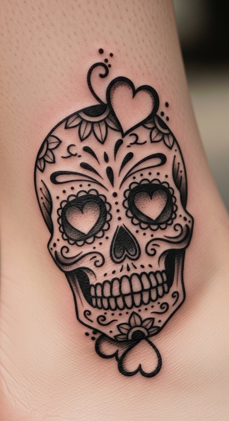 Combine hearts for emotion. They fit inside the skull. Ankles keep it discreet. Draw hearts on paper. Online ideas spark thoughts. Include beats for life. This design warms up. Plan with ease.