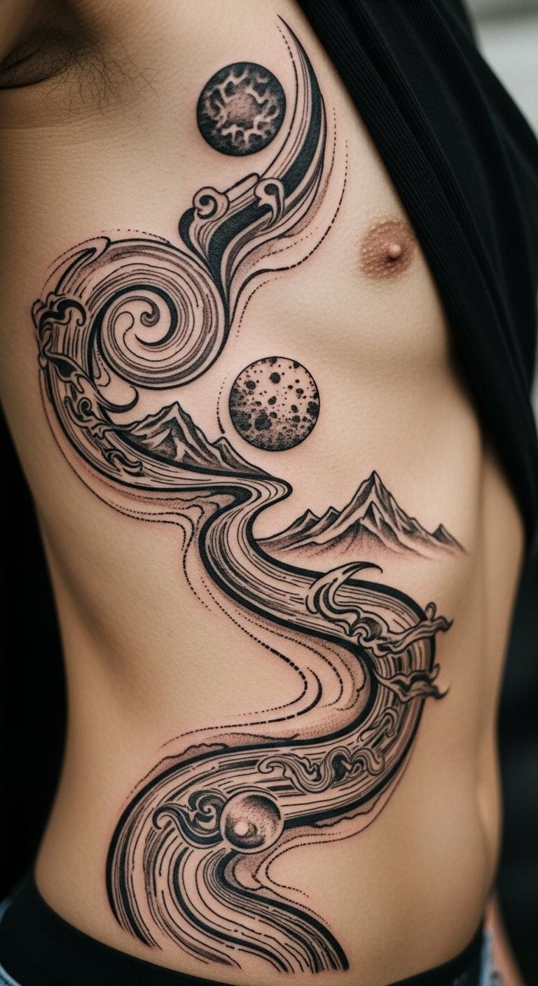 Swirls on your side can share your story through ink. This design personalizes your journey. Note ideas on paper. Easy start. Search for custom options. Talk to creators. Tailor to your life. Create storyboards at home. Place it ribs-down. Make it meaningful. Use notes and sketches. This side tattoo reflects you. Choose for privacy. Save by customizing.