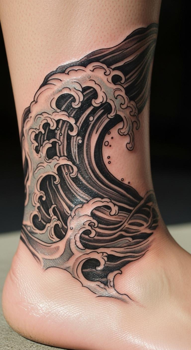 Waves wrapping your ankle mimic the sea’s rhythm. This pattern flows naturally. Draw waves on paper. Basic step. Seek ankle deals. Get advice. Add ocean vibes. Simulate with water play. Walk with it daily. Keep it wave-like. Use blue markers. This ankle tattoo soothes minds. Select for stability. Save through deals.