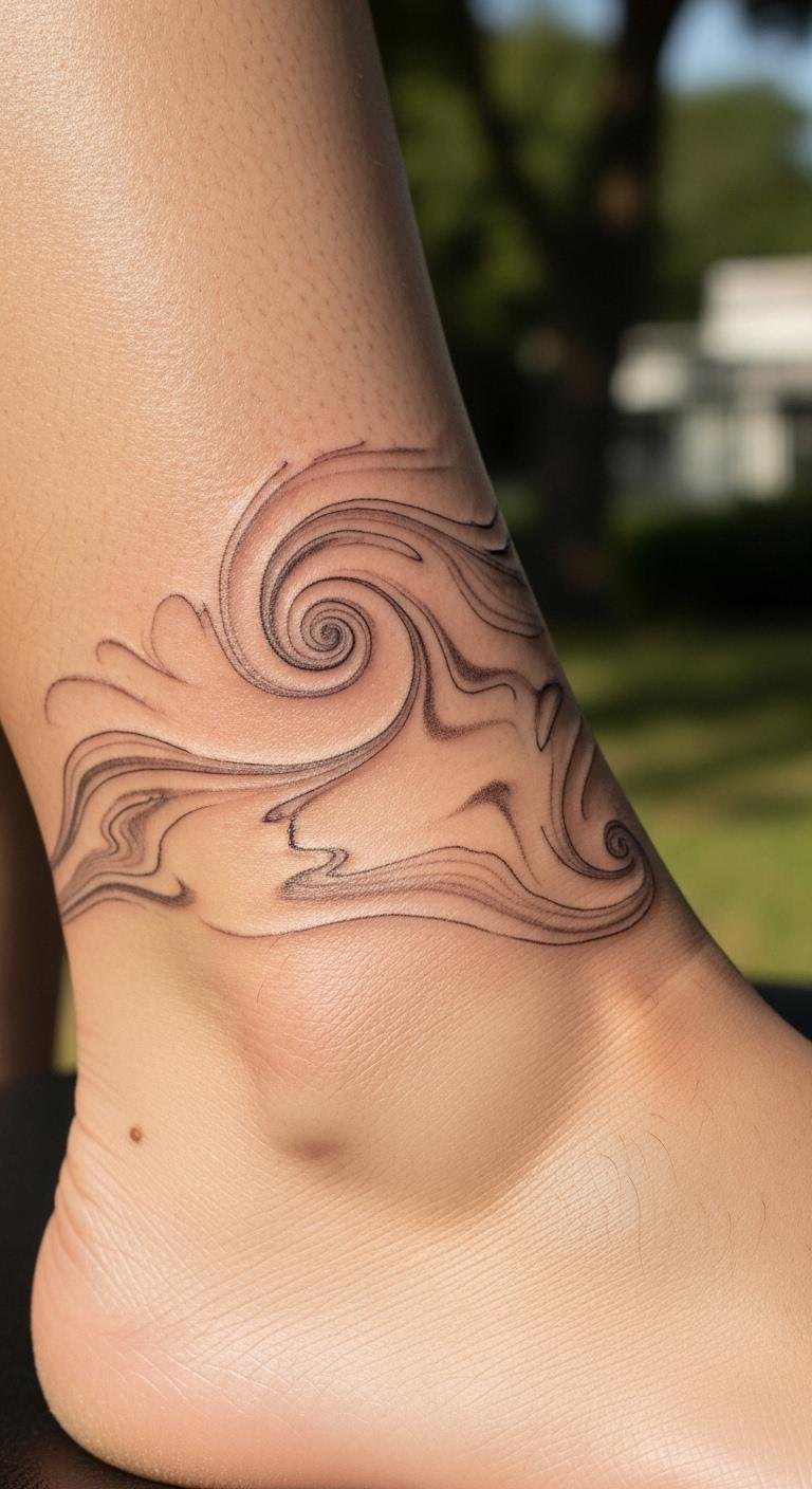A few swirls around your ankle keep it subtle and sweet. This pattern fits daily wear. Draw it on your leg with a pen. Quick and free. Look for inexpensive parlors nearby. Share ideas in online forums. Blend in cloud shapes for whimsy. Experiment with water marbling using household dye. Wear it with sandals for fun. Keep sizes small to match your routine. Use basic supplies like paper and ink. This ankle tattoo enhances your step. Select spots with good airflow. Cut costs by planning ahead.