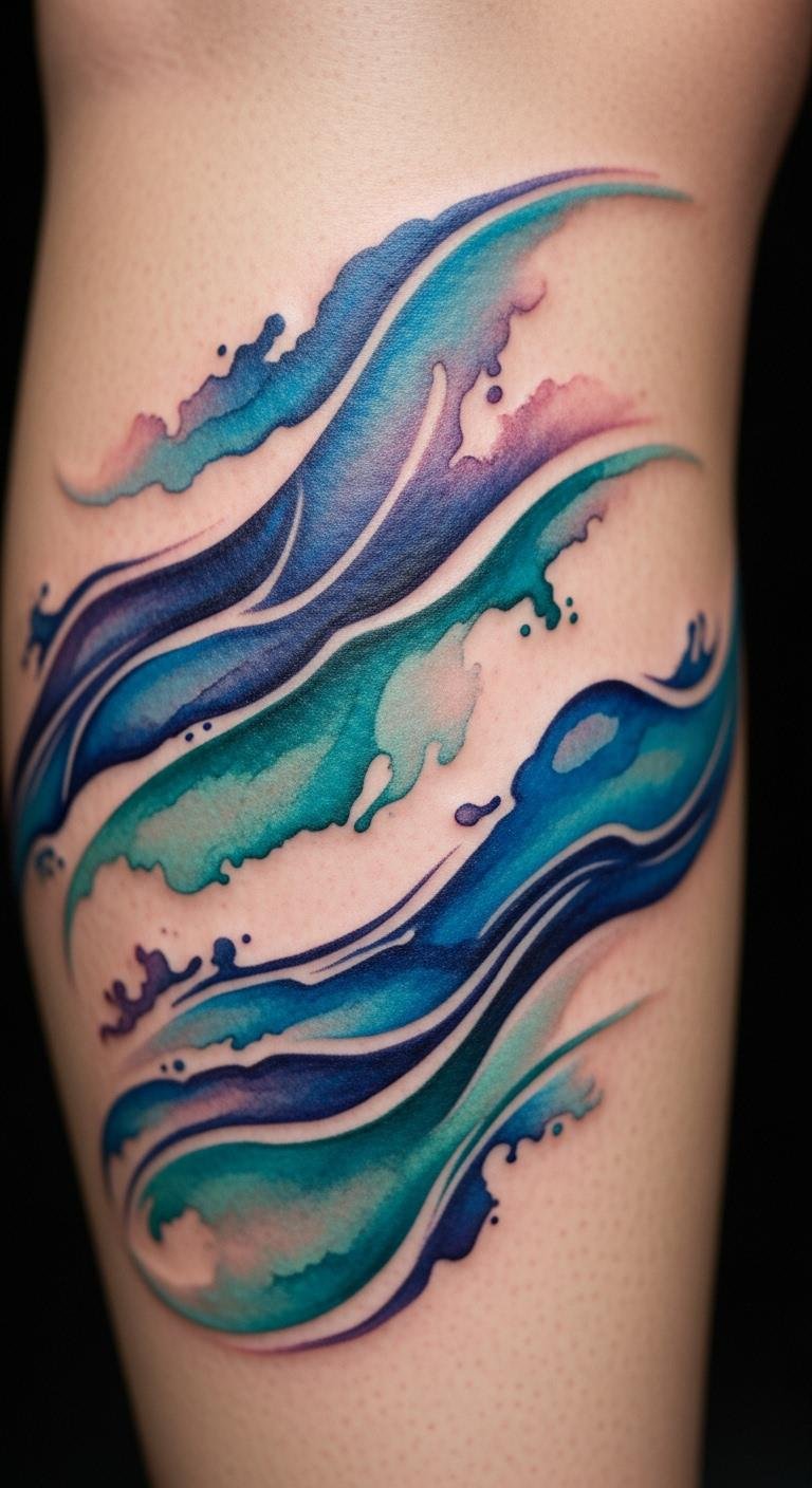 Imagine waves of color flowing across your shoulder. This design adds energy with blues and greens. Draw it first with colored pencils on paper. It takes minutes and pennies. Find an artist who mixes inks affordably. Attend free workshops to learn basics. Combine it with a leaf shape for extra meaning. Try a DIY version by dripping food coloring in water and capturing the patterns with your phone. Place it on your shoulder for easy cover with shirts. Make it larger for a statement. Use simple tools like brushes from home. This tattoo fits active days. Pick spots that show off in summer. Keep costs down by bargaining with artists.