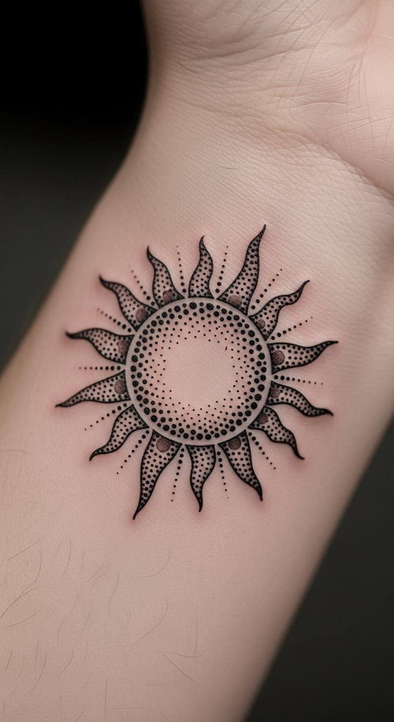 Dotwork Sun Tattoo