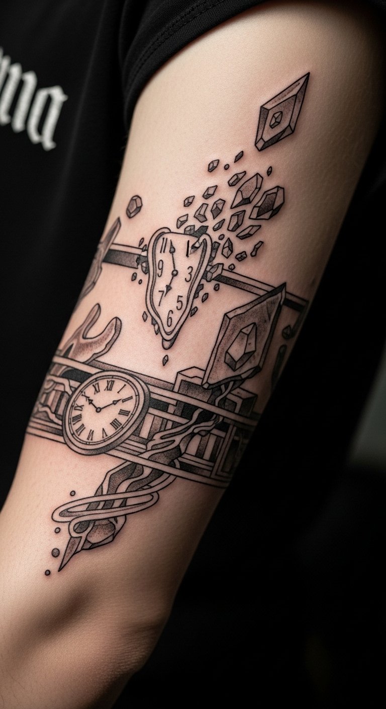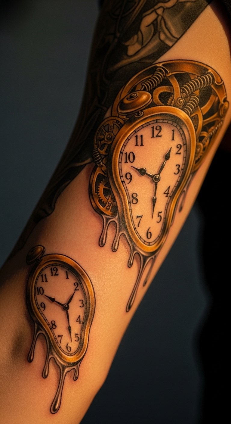 Picture a tattoo where time bends and twists. Melting clocks add a touch of mystery to your arm. Start with a sketch on paper. Use free apps to draw your version. Find a local artist for under $100 if you keep it small. Bold the key: practice your design first. Break it down: Draw one clock, then add the melt. This makes it fun and cheap. Try temporary tattoos from online stores for $5. They let you test the look without commitment. Next, chat with an artist about simple changes. Keep costs low by choosing black ink only.