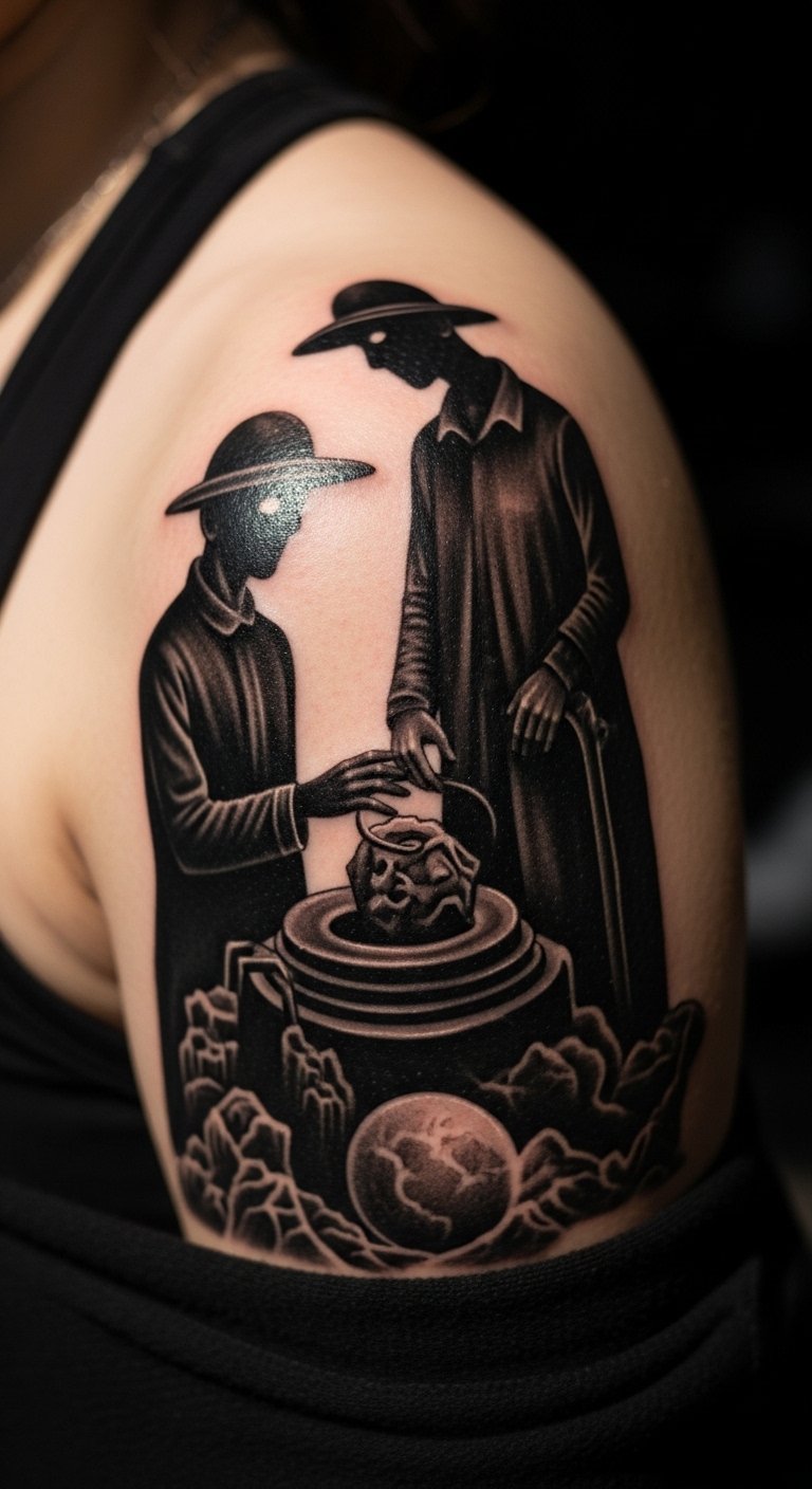Grey tones build mood on your shoulder. Monochrome pieces feel timeless. Start with grey pencils for sketches. Online resources are free. Bold the tip: shade lightly at first. Break it: One shadow per sketch. Stick-on versions for $6 work for trials. Artists offer monochrome for $100. Personalize with family shadows.