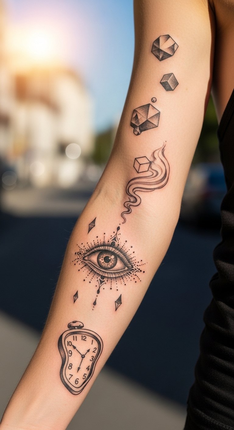 These surrealist tattoos open doors to your inner world. Pick one design, sketch it out, and find an affordable artist. Start today and make your skin a canvas of dreams.