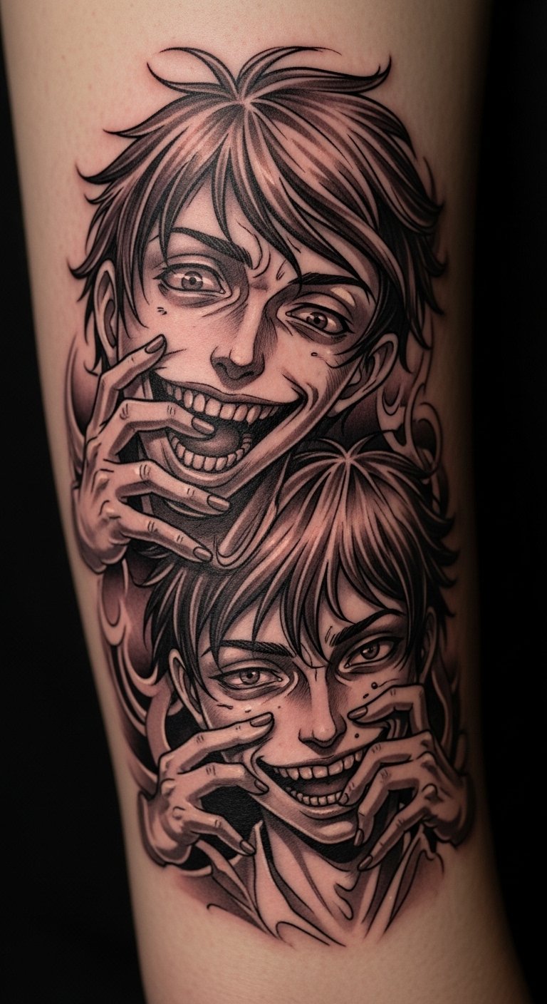 Anime worlds turned surreal. Inspired tattoos excite. Sketch anime figures. Free anime resources. Bold this: distort anime. One character at a time. Anime stickers for $3. Options at $70. Add your twists.