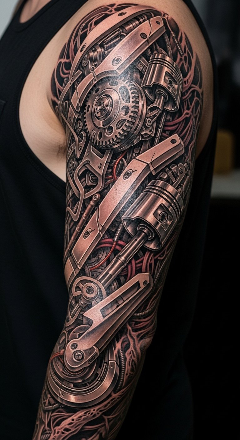 Machines meet flesh. Biomechanical art fuses. Sketch machine parts. Free bio designs. Bold the idea: fuse parts. One part per sketch. Bio stickers for $5. Options at $95. Personalize machines.