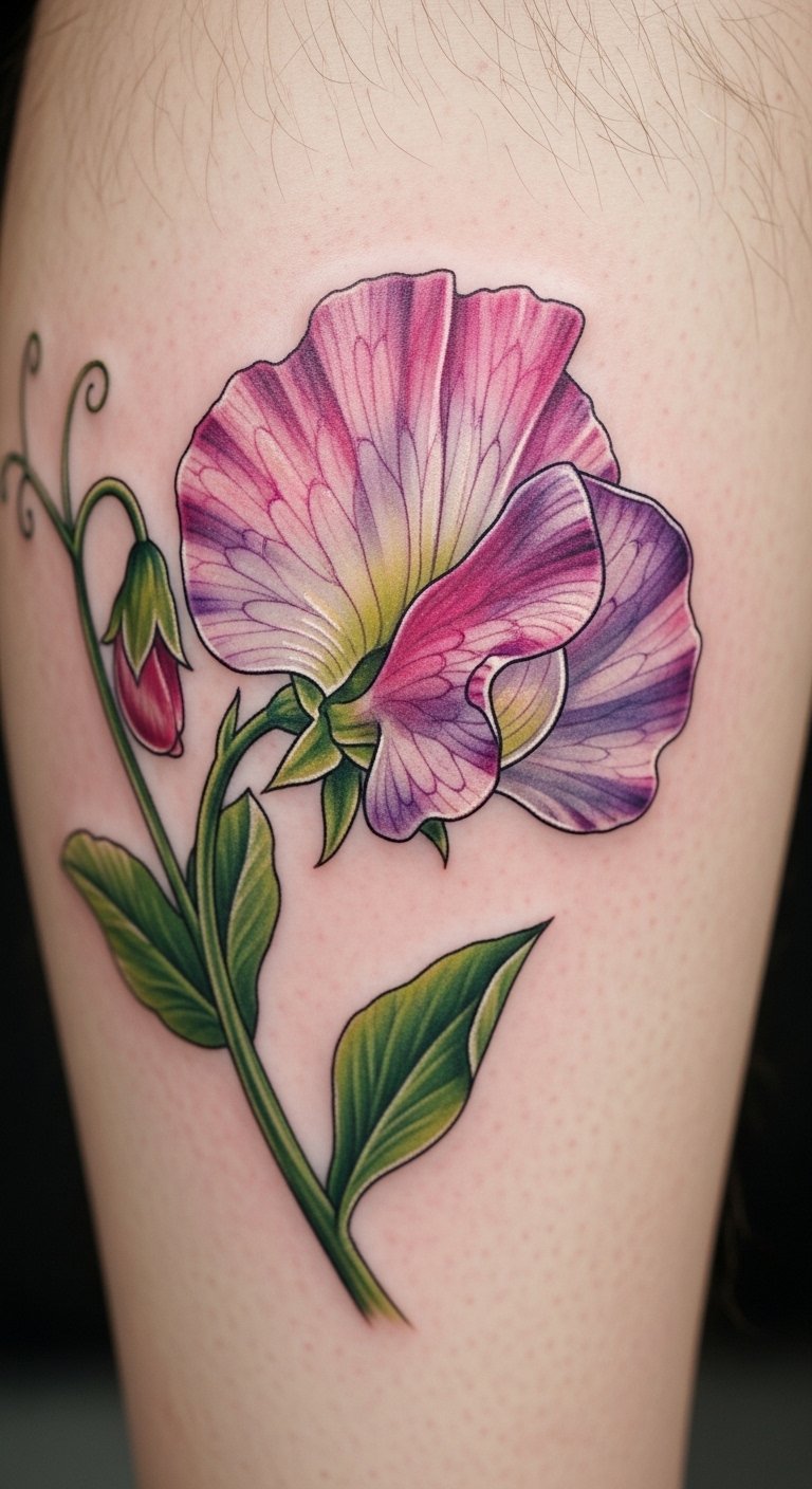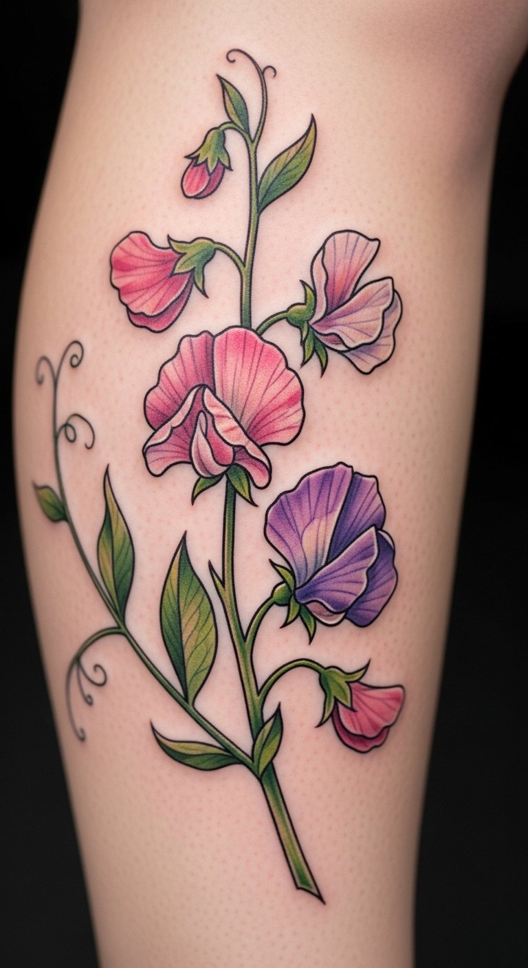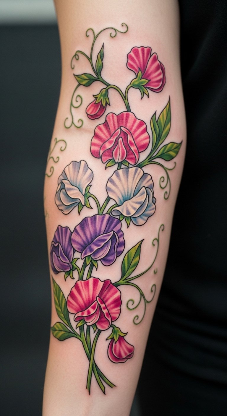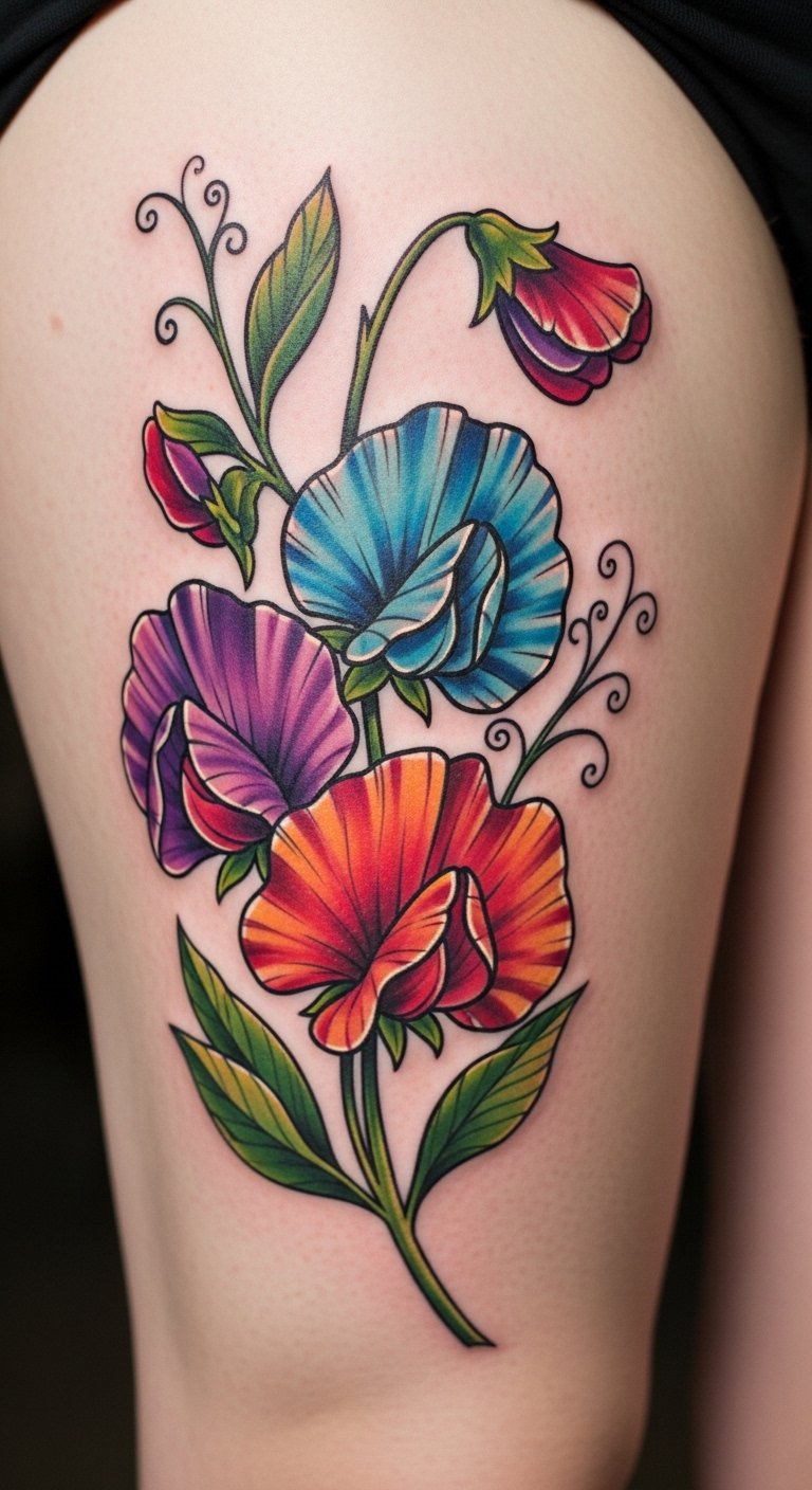 Vibrant petal sweet pea tattoos fuel journeys. Pick bold colors. Draw energetic scenes. Free vibrant tools. Place on thigh for movement. It drives joy. Use bright paints at home. Inexpensive journeys. Find colorful offers. Add sparks. These tattoos light paths.