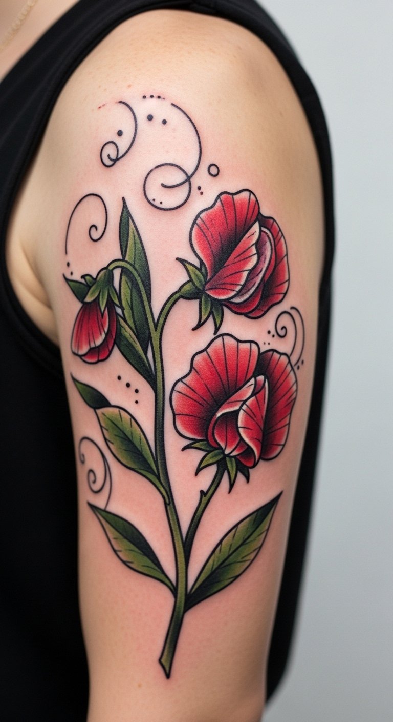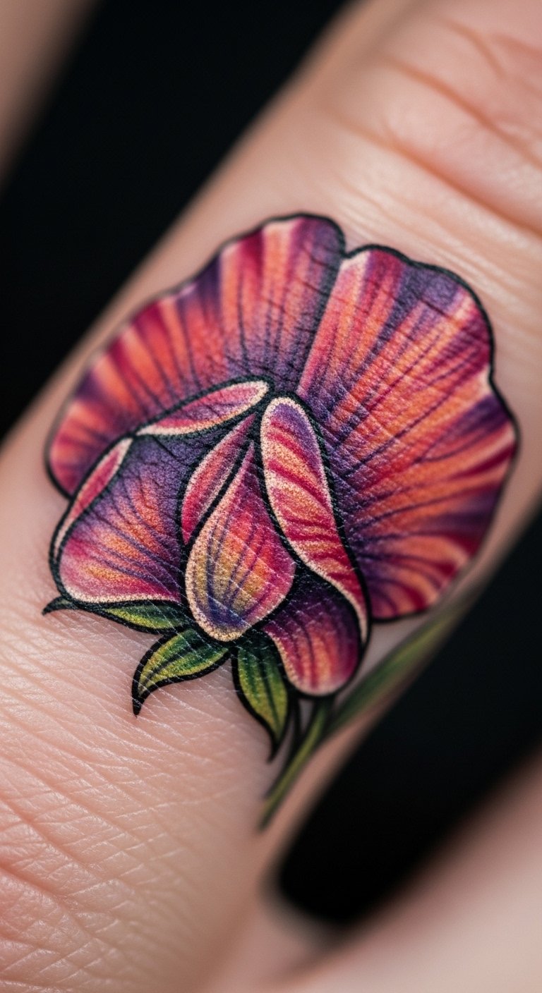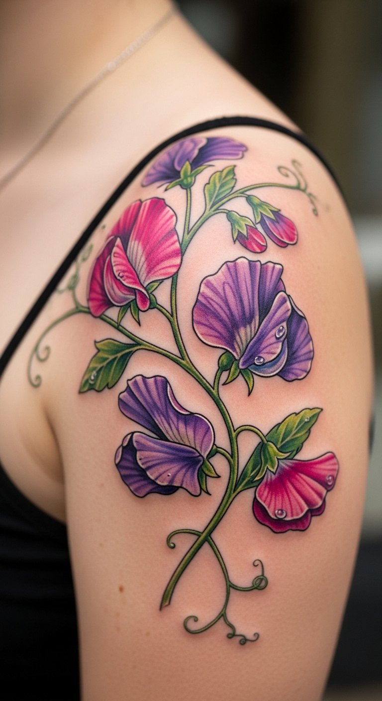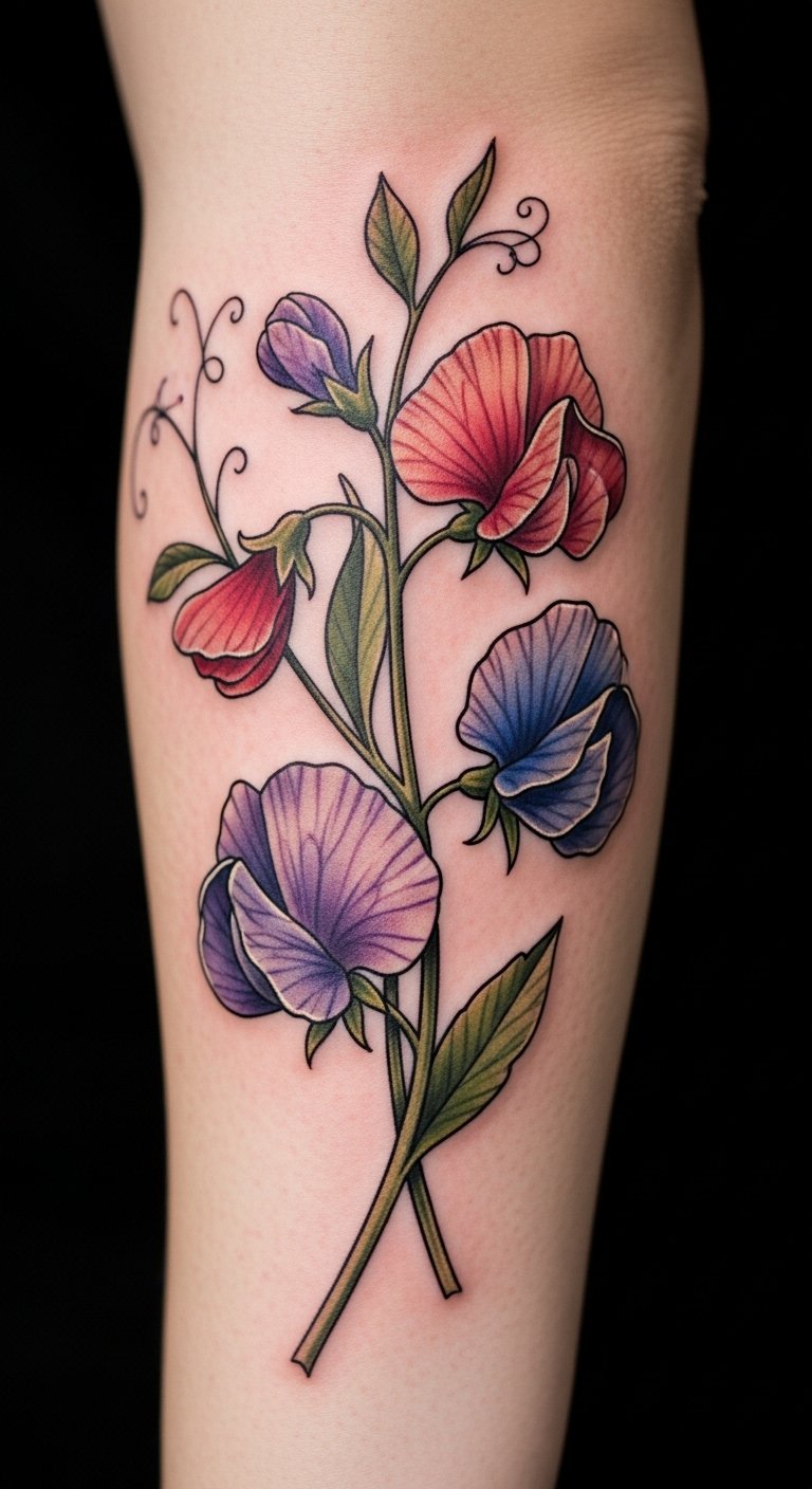 Vibrant petal sweet pea tattoos fuel journeys. Pick bold colors. Draw energetic scenes. Free vibrant tools. Place on thigh for movement. It drives joy. Use bright paints at home. Inexpensive journeys. Find colorful offers. Add sparks. These tattoos light paths.