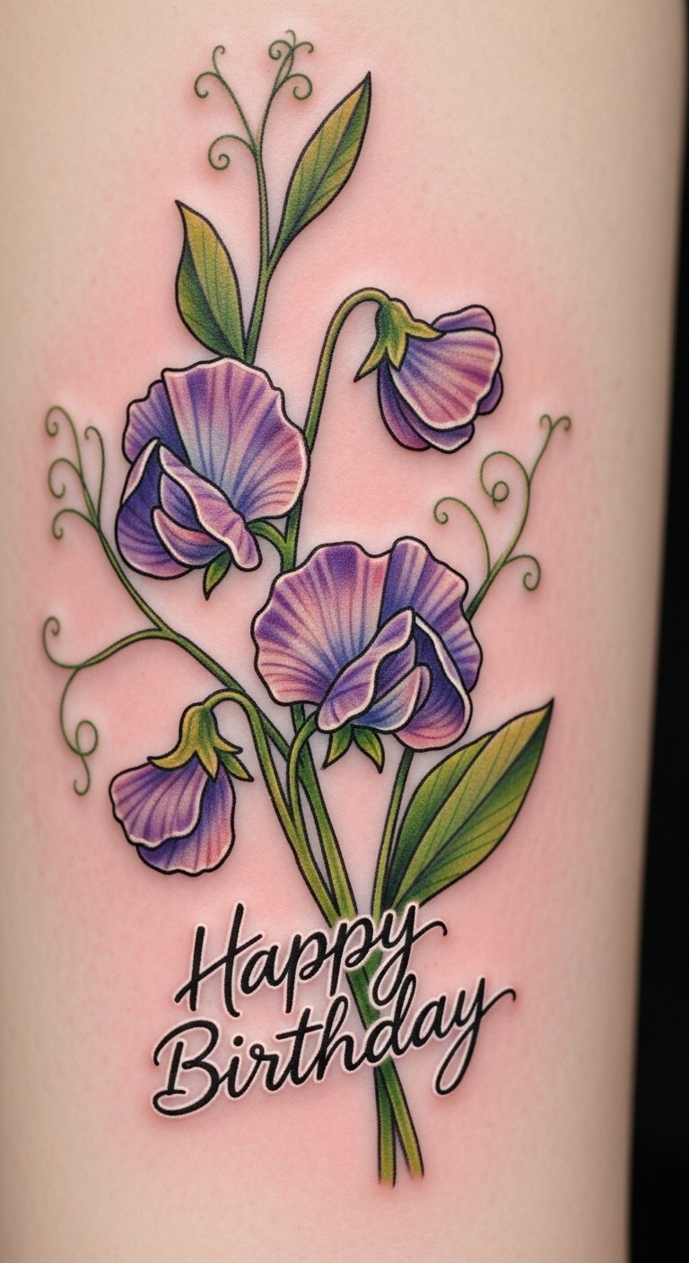 Gratitude-Themed Sweet Pea Tattoos