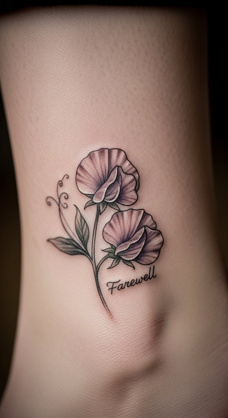 Farewell sweet pea tattoos aid moving on. Pick ending motifs. Draw goodbyes. Free templates assist. Place on ankle for steps ahead. It sparks forward motion. Use erasable ink for tests. Keep it inexpensive. Find forward-focused artists. Add a path line. These tattoos encourage progress.