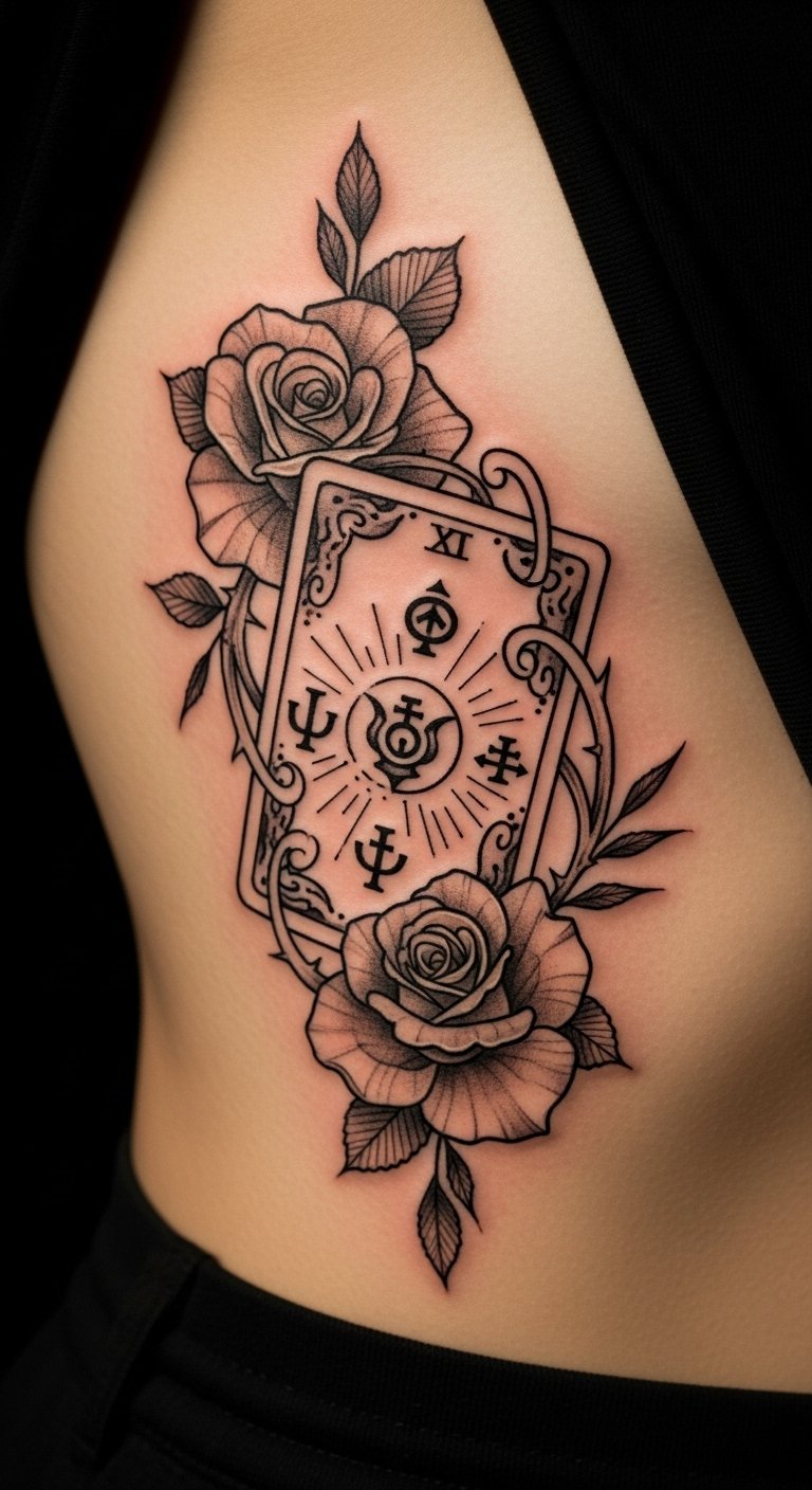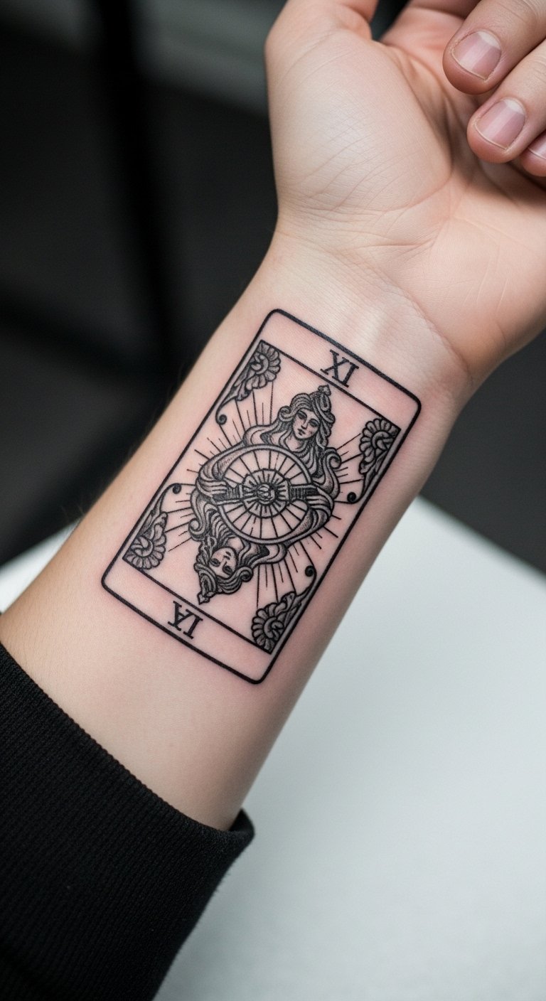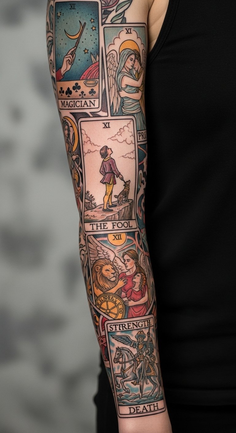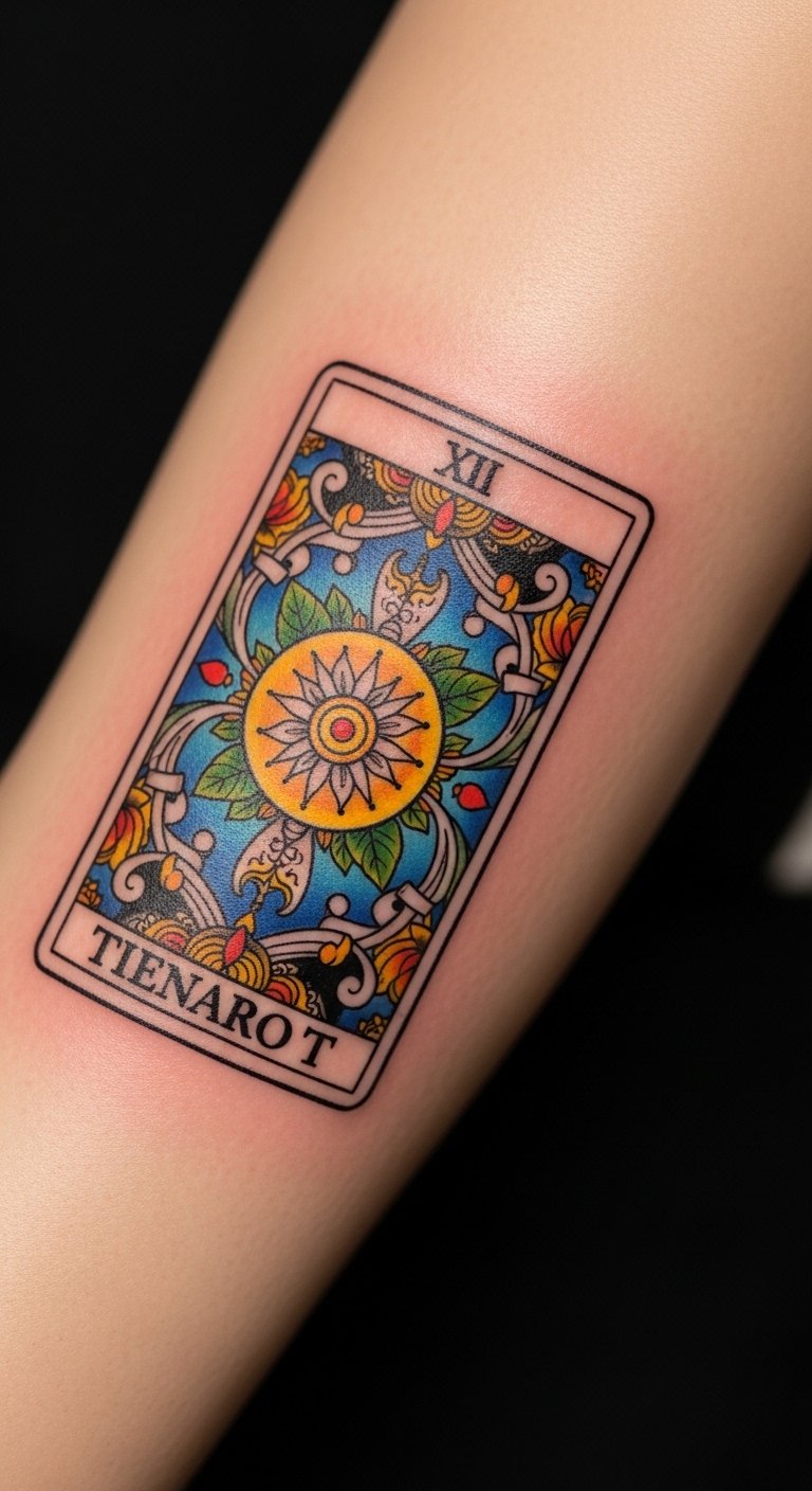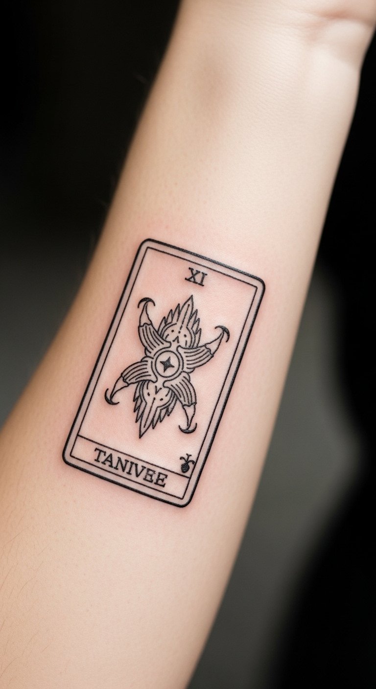 Forearm spots make tarot visible every day. Sketch on your arm with a marker first. Look for beginner artists offering discounts, under $80. Add colors sparingly to stay affordable. Practical tip: Pair it with a bracelet for style. Real DIY: Cut card shapes from magazines to experiment. This placement boosts motivation—keep designs straightforward.