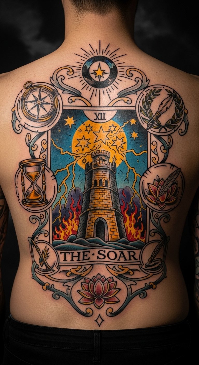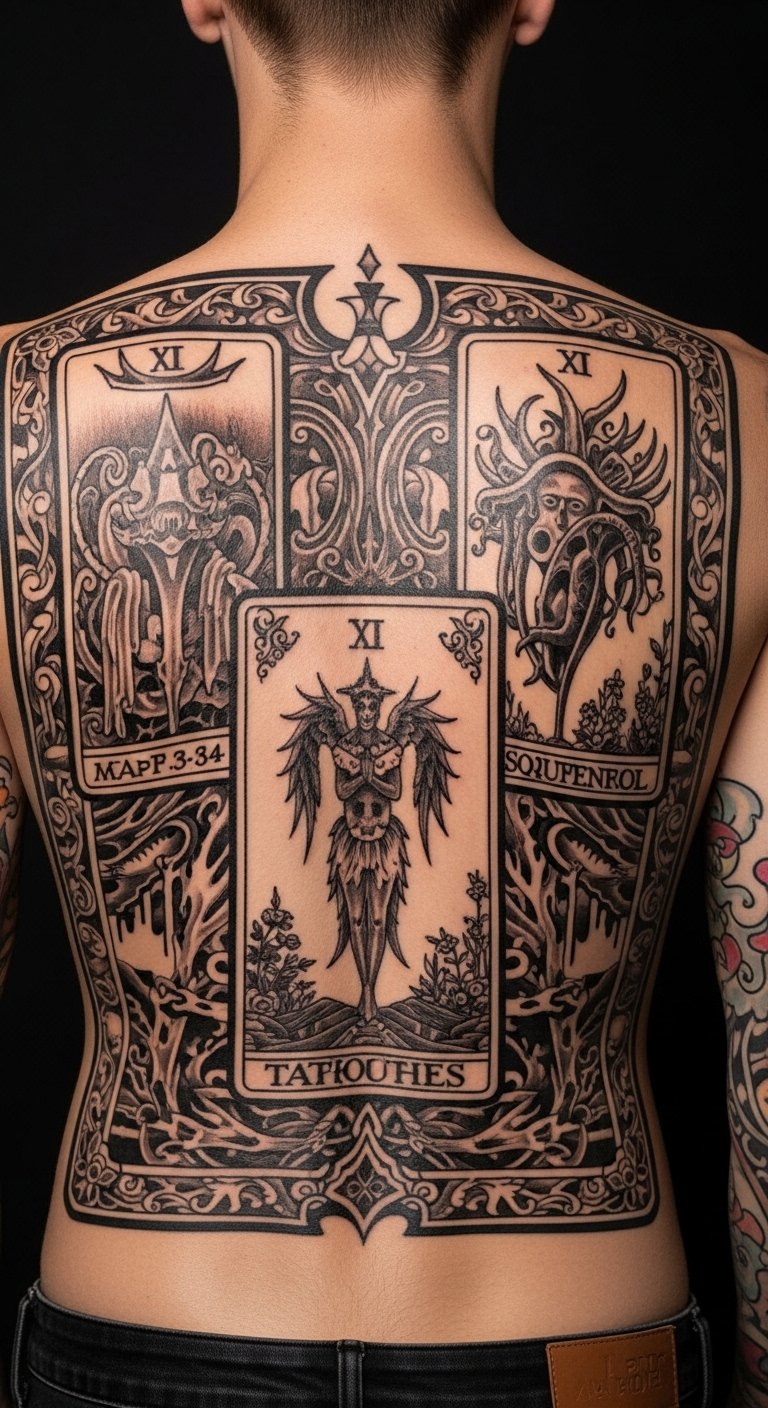 Back tattoos tell big tales. Plan with free drawing tools online. Split sessions to manage costs, perhaps $200 total. Mix cards for a narrative flow. Save money: Buy your own stencil kit. Real DIY: Trace designs on large paper. Use this area for meaningful epics—heal with rest.
