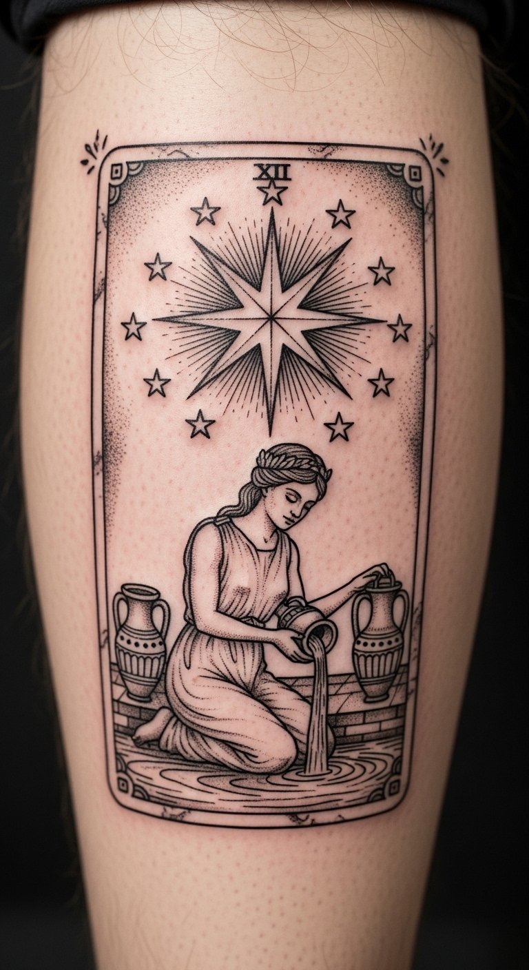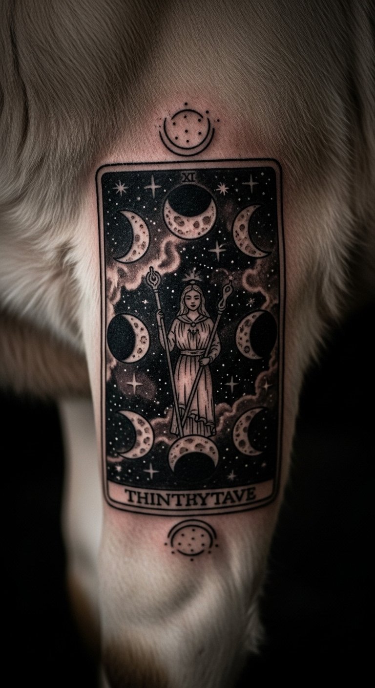 The Moon card uncovers hidden truths. Sketch ideas quickly on a notebook. Opt for affordable custom designs from online freelancers for less than $30. Place it where you see it often, like your wrist, for daily reflection. Add a twist: Include a star for your own story. Budget tip: Shop for sales on tattoo supplies if you’re touching up at home. Real DIY: Print and cut out moon shapes from paper to plan your layout. Focus on clear lines to make it last—choose artists with good reviews for value.