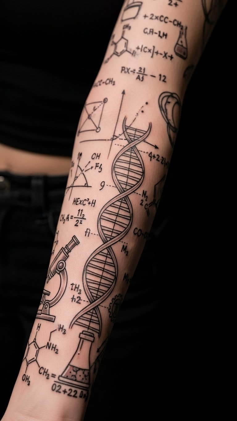Science symbols celebrate smarts. A STEM sleeve incorporates DNA and formulas for a clever look. Start with an equation on your wrist. Expand gradually. Budget tip: Look for online tutorials on affordable artists, often under $100. Draw symbols on paper with markers for a DIY plan. This helps refine ideas cheaply. Opt for quick sessions. Use basic salves for aftercare. Wear professional attire to make it work-friendly.