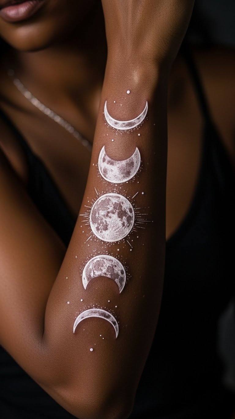 Moon cycles mark time and growth. A moon phase sleeve lines up phases from wrist to shoulder. Start with a crescent. Continue the story. Budget tip: Use loyalty programs at studios for discounts. Draw phases on paper for practice. This is straightforward and free. Build over time. Use simple care items. Pair with nightwear for theme.