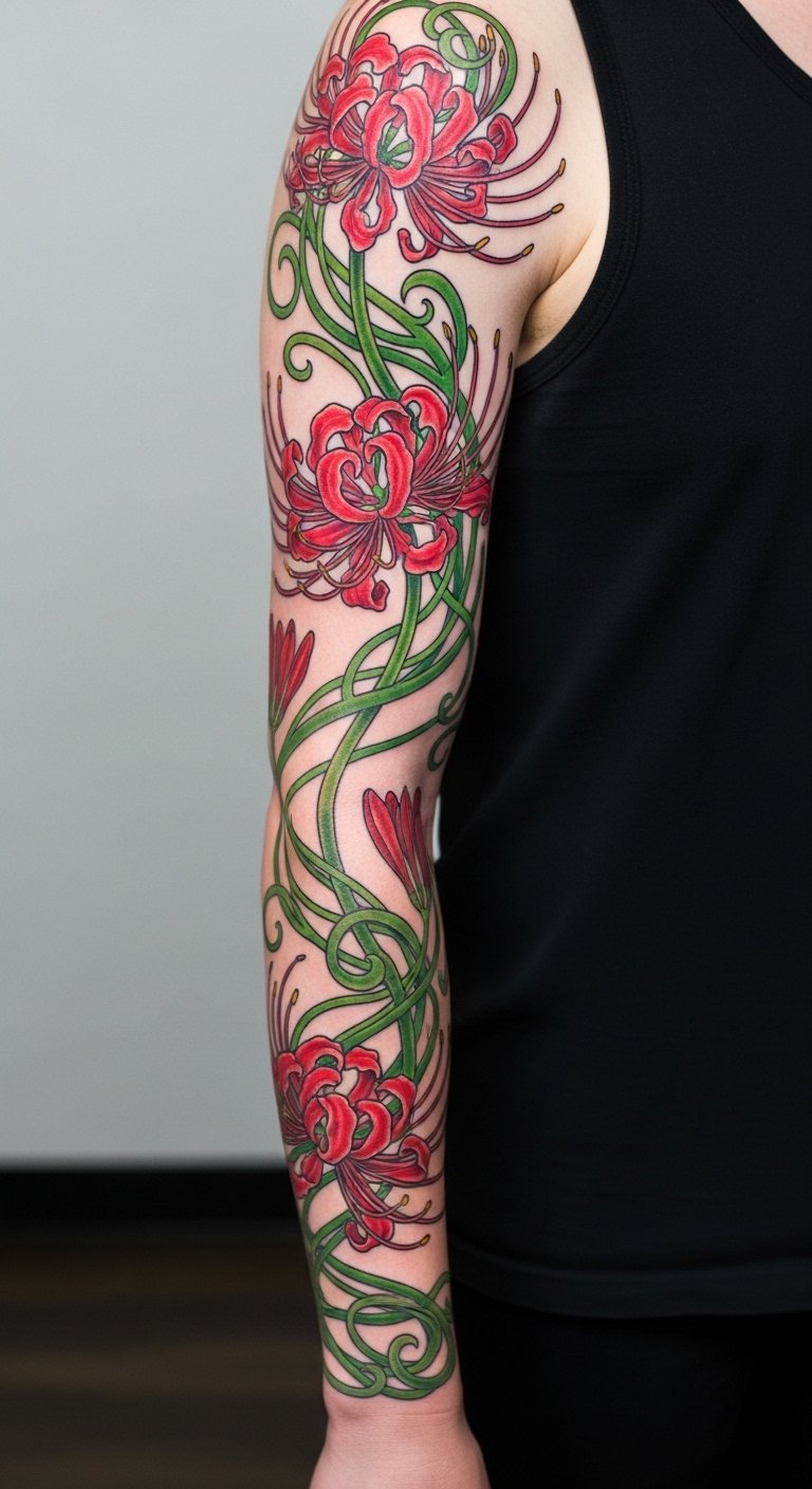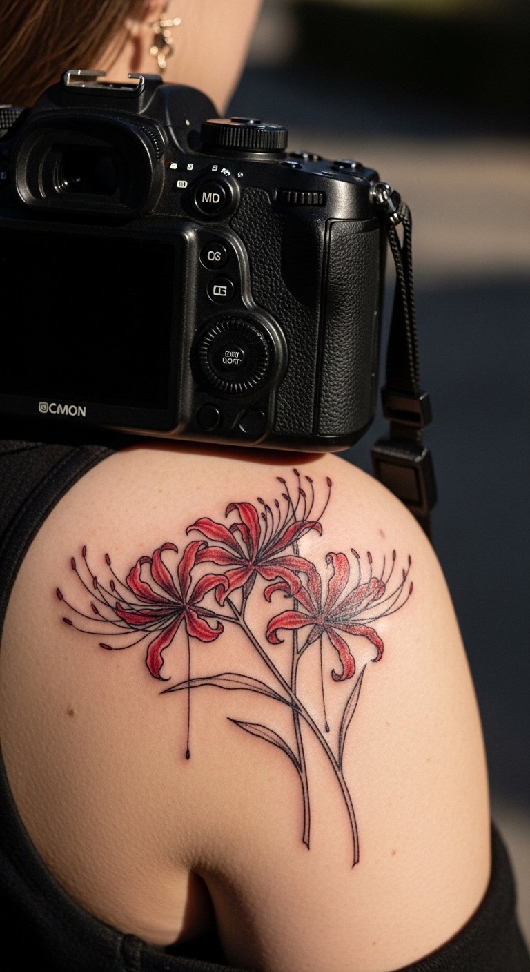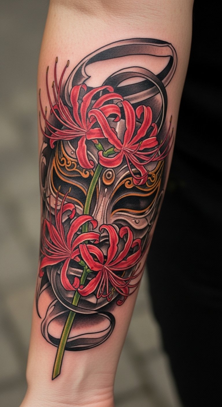 The spider lily stands for loss and renewal, a hit among fans. Place it on your shoulder for a nod to support. Use red ink for vibrancy, but opt for outlines if you’re on a budget. Draw your own version using online templates to discuss with artists. It could cost $80 for a small design. Keep it subtle by sizing it to fit hidden spots. Heal faster with natural lotions from your kitchen. Mix in other elements like a simple mask for a custom feel. This tattoo reminds you of growth every day. Experiment with phone apps to tweak colors before committing.