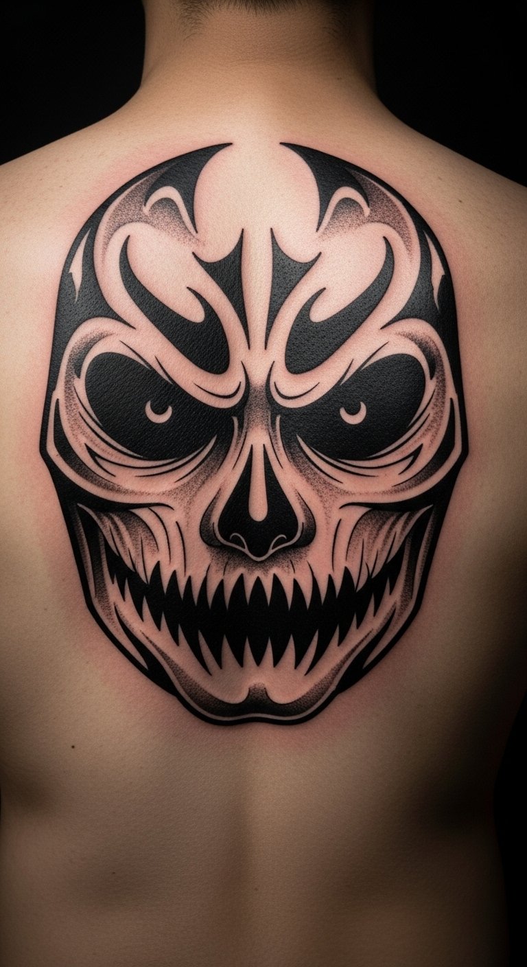 A ghoul mask tattoo brings that dark, fierce energy to life. Put it on your back for a bold statement. Choose simple lines to cut costs—aim for under $100. Sketch at home with basic pens to plan ahead. Add metallic shades if you want flair, but stick to black for savings. Protect it with cheap, drugstore creams during healing. Pair it with a small eye for a full theme. This design pops at events or stays private. Test ideas on paper to see how it flows. It’s an easy way to show your fandom without overcomplicating things.