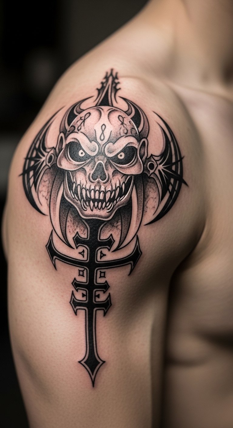 Shoulders hold symbols of strength, like a ghoul emblem. Position it here for that support feel. Go for basic ink to save, maybe $90. Sketch with pencils at home for ideas. Use simple bandages for healing. Add a lily for depth. This spot hides easily under clothes. Test on paper to perfect it. It’s practical for daily life.