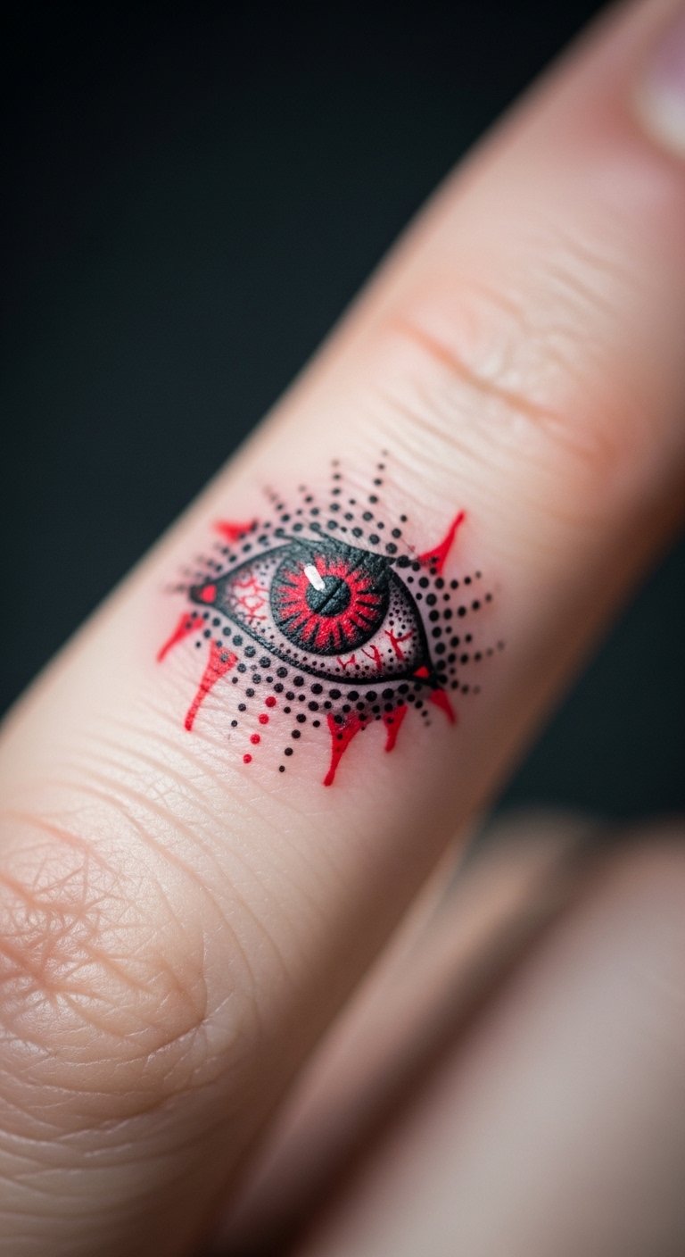 A finger eye tattoo keeps it discreet. Opt for tiny dots to cut costs, under $50. Sketch quickly with pens. Heal fast with band-aids. It’s great for rings. Combine with lines for flair. Show it off casually. Experiment on paper. Perfect for quiet fans.