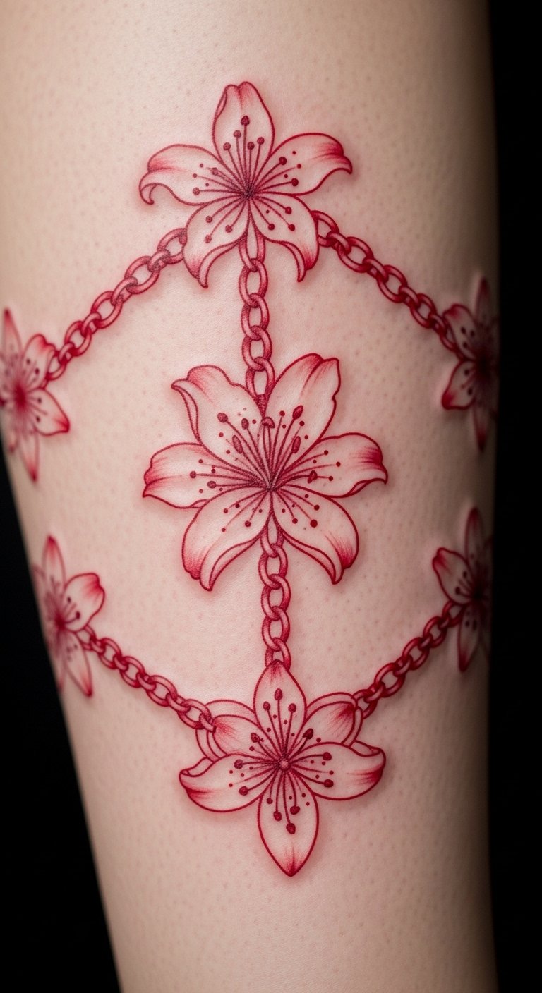 Lily chains represent cycles. Leg for length. Chains affordably, about $130. Link at home. Heal properly. Extend design. Symbolic chain. Plan chains. Connected theme.