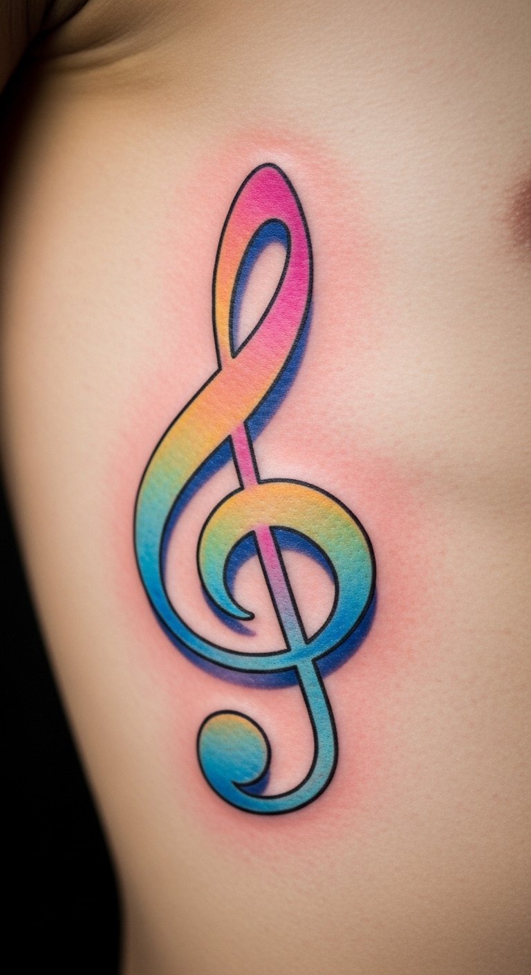 3. Colorful Treble Clef on the Ribs