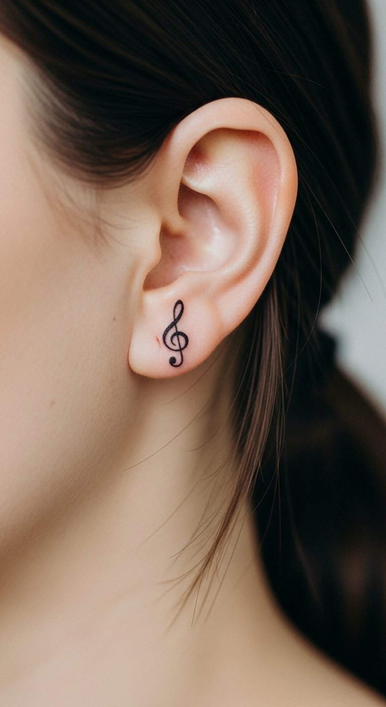 6. Small Treble Clef Behind the Ear