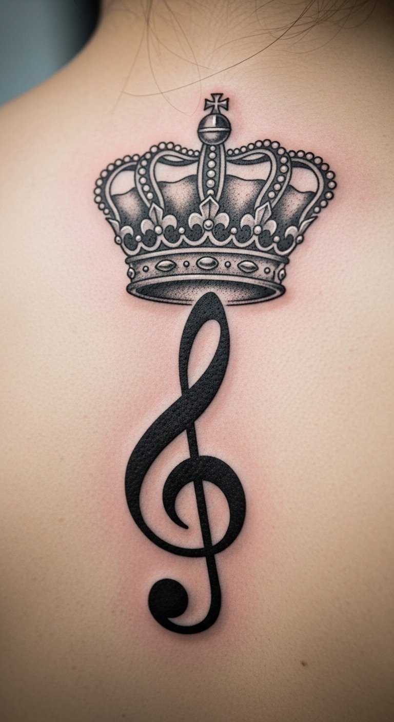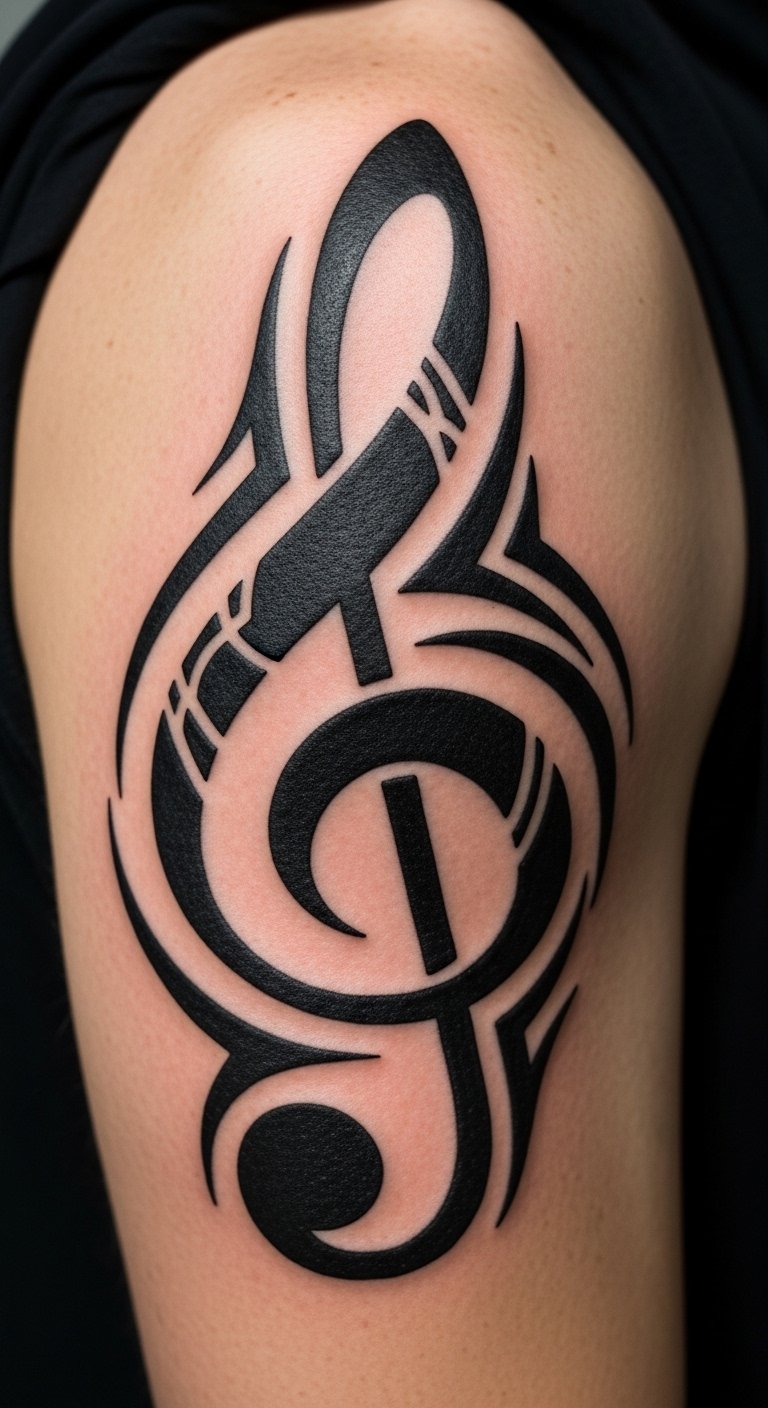 Pair a treble clef with a bass clef for balance, like harmony in a song. Draw both on paper first with a basic pencil set—free if you have one. Local shops might ink this for $80.