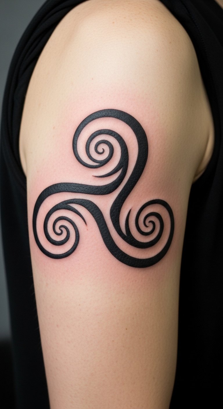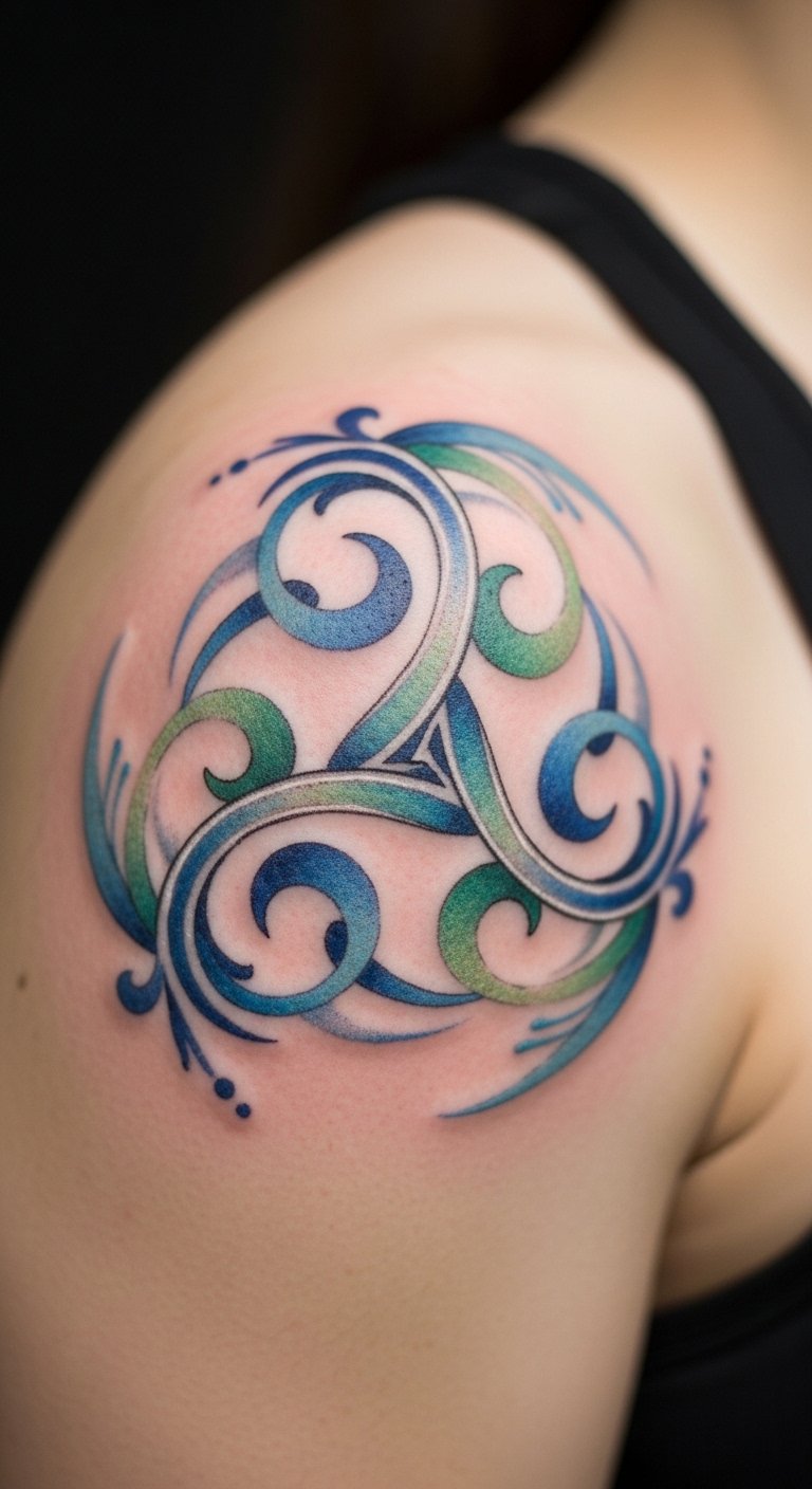Add color to your shoulder with a watercolor triskelion. It looks artistic and flows with your body. Search for affordable studios in your area. Experiment at home with washable paints on paper. Choose two colors to keep it cheap. The process is quick, saving you money. Customize by blending shades yourself. Cover it with a shirt for formal events. Try free online tutorials for ideas. This tattoo fades nicely over time without much fuss.