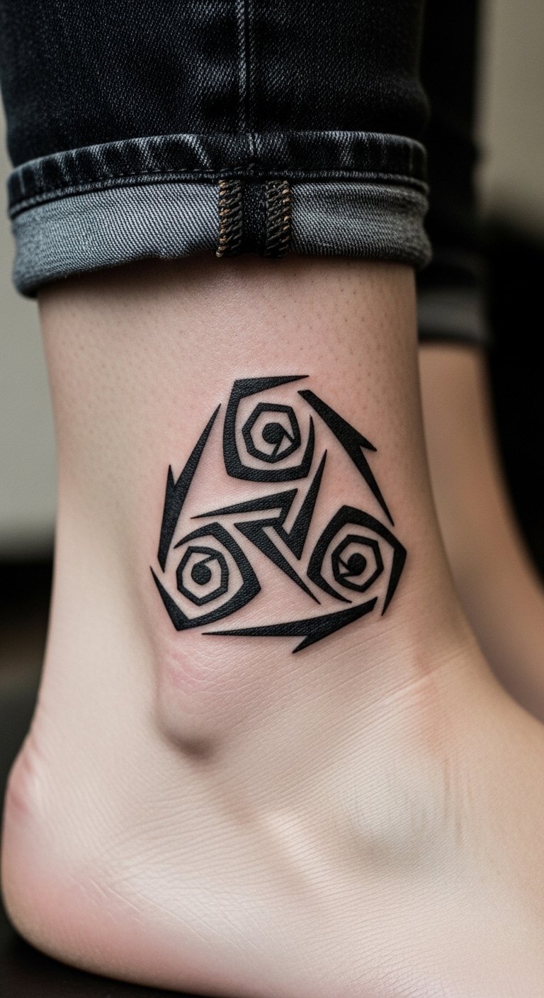 Mix geometry with a triskelion on your ankle for a modern edge. It’s perfect for showing off in shoes. Check local ads for low-price options. Sketch combinations on paper at your desk. Use basic shapes to save on ink. The session is short, keeping bills down. Tweak it by adding triangles yourself. Pair it with socks for coverage. Test with henna from the market. This style stays neat with easy touch-ups.