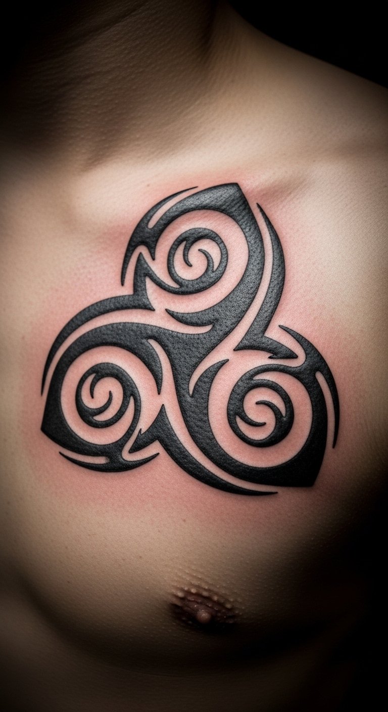 Go tribal on your chest for a cultural nod. This design feels grounded and bold. Find artists offering discounts online. Draw patterns freehand at home. Opt for one color to cut expenses. It fits into a quick visit. Personalize by thickening lines. Hide it under shirts as needed. Use string to outline ideas first. The tattoo heals with basic supplies you own.