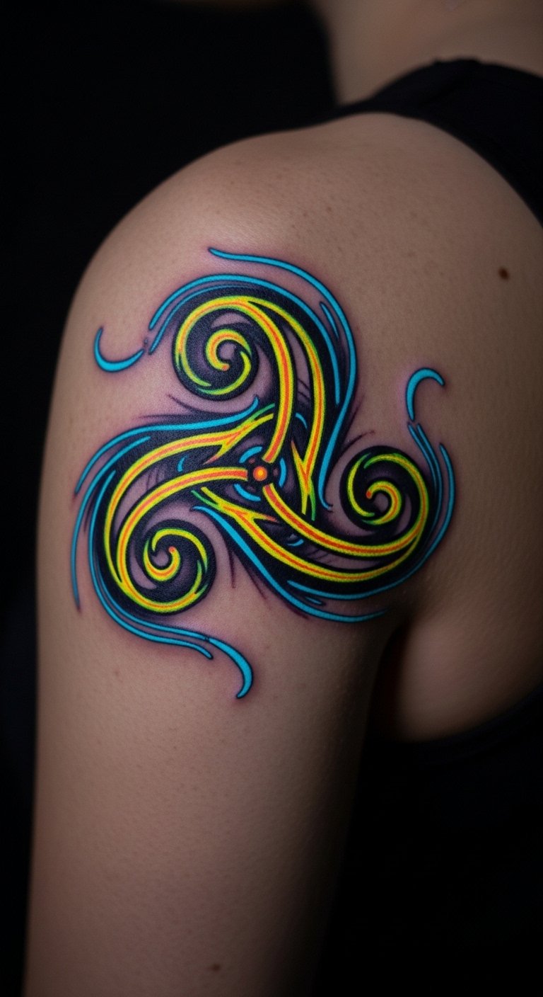 Light up with neon triskelion for fun nights. Put it on a visible spot. Find deals through apps. Test with glow paints at home. Pick vibrant but cheap colors. It takes little time. Make it glow brighter yourself. Cover for day events. Draw with markers first. Care is as simple as soap.