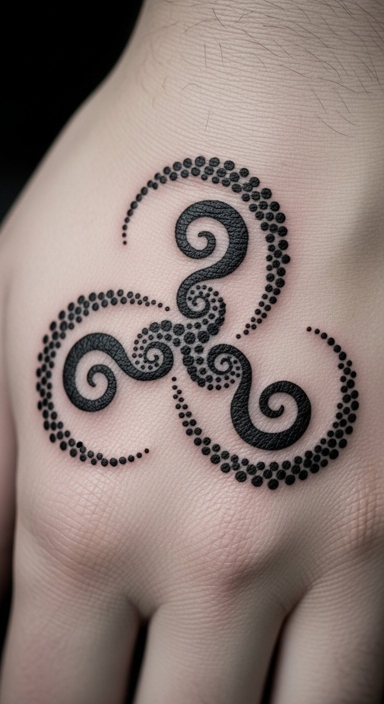 Use dots for a textured triskelion on your hand. It’s unique and detailed. Check for promotions locally. Dot paper with a pen. Opt for basic tools. Work is fast. Add more dots as you like. Gloves can hide it. Practice on fabric. Upkeep uses everyday items.
