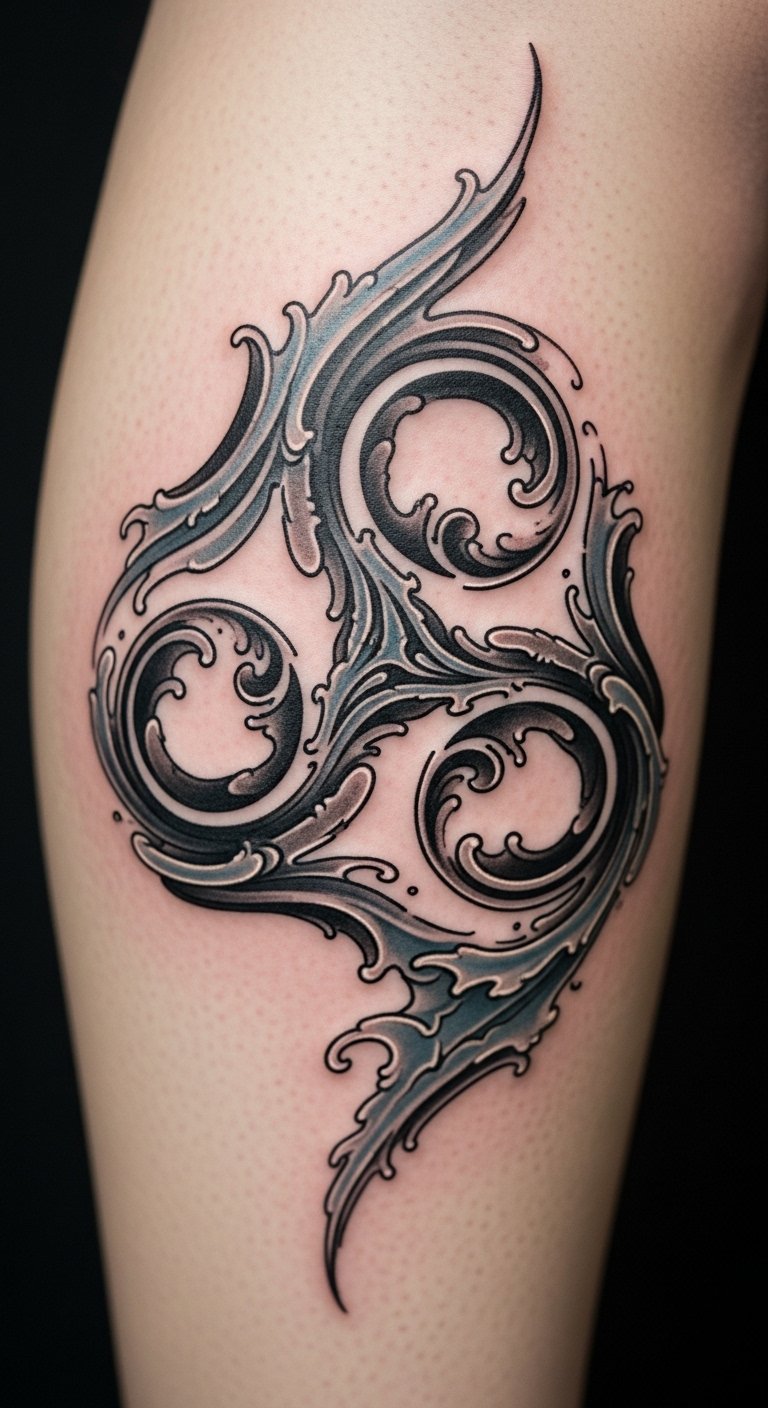 Flow like water with abstract triskelion on your leg. It’s fluid and calming. Find budget artists. Draw waves on paper. Go for blue tones. Session is quick. Personalize the flow. Pants conceal it. Test with watercolors. Care is straightforward.