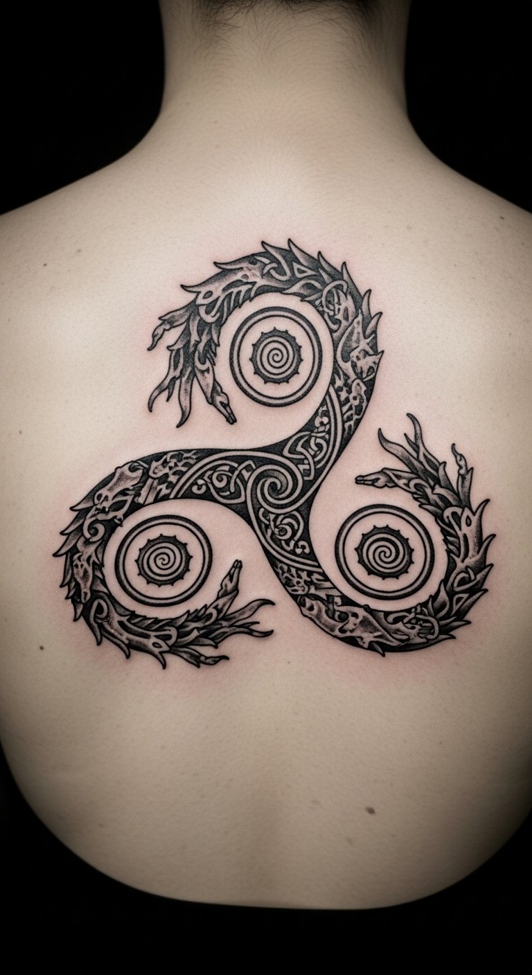 Keep it light on your back with a minimalist triskelion. This one stays hidden yet meaningful. Look for deals at walk-in shops. Draw it out at home with a pen. Stick to gray ink for lower costs. It only takes a few minutes in the chair. Adapt it by making spirals smaller. Use clothing to conceal it easily. Practice on a mirror with stickers. The design requires simple aftercare like lotion from your cabinet.