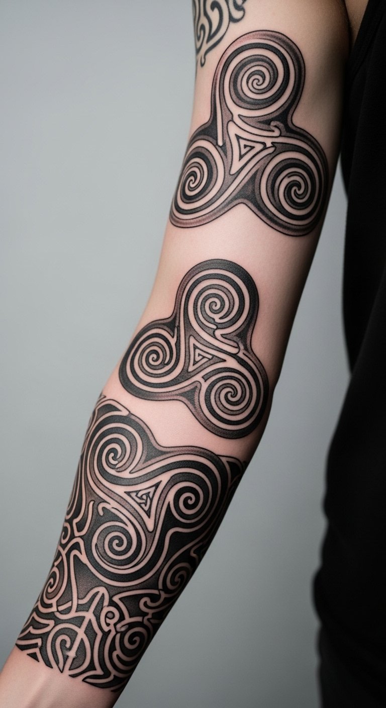 Cover your arm with a full triskelion sleeve. It’s a big statement. Break it into sessions for savings. Plan at home with sketches. Mix inks wisely. Spread out visits. Design it step by step. Long sleeves mask it. Use body paint first. Care with daily creams.