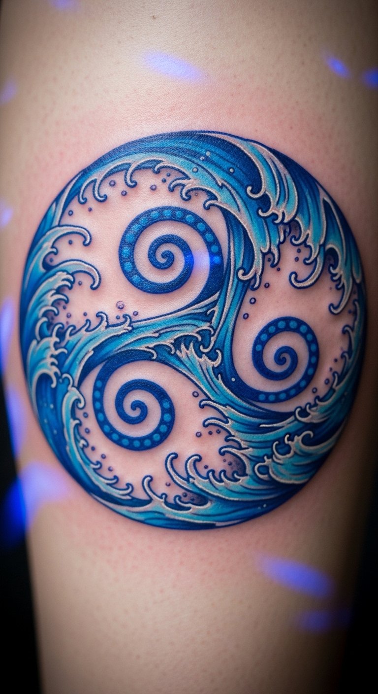 Wave in ocean vibes on your leg triskelion. It’s fluid and free. Find local bargains. Draw waves simply. Stick to blue. Quick visit. Tweak the waves. Pants hide it. Use water for ideas. Basic maintenance.