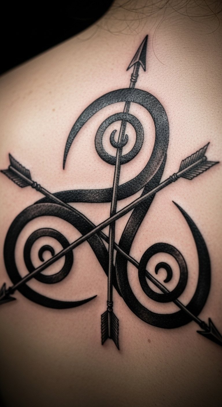 Pierce your back triskelion with arrows for strength. It’s directional and strong. Look for sales. Sketch arrows easy. Use dark colors. Brief process. Customize the arrows. Shirts conceal. Test with pins. Simple care.