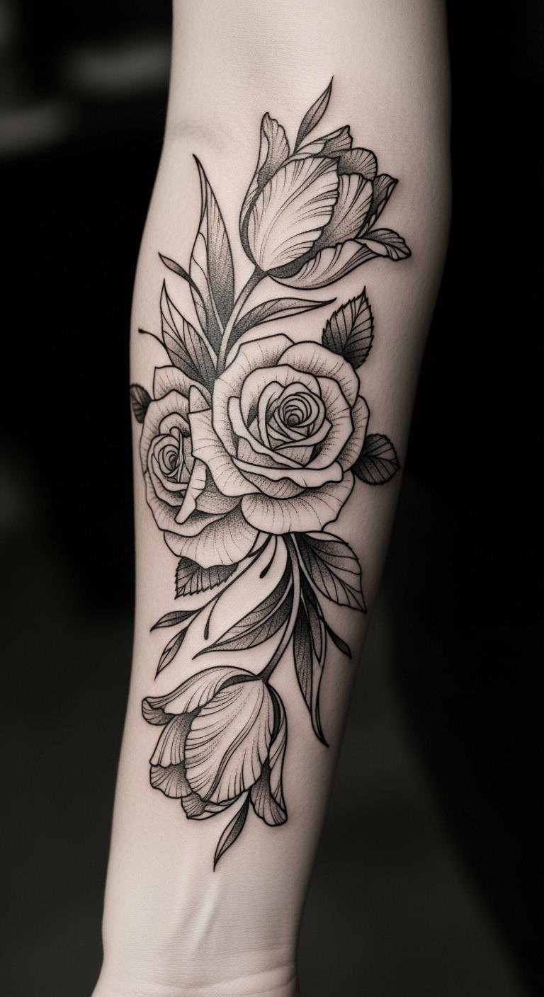 Mix a tulip with a rose for a floral pair. Put it on your forearm for balance. This combo adds depth to your ink. Use basic ink colors to stay budget-friendly. Sketch both flowers on paper first. Search for artists who do sets at a discount. Make the design symmetrical for ease. Wear long sleeves to show it off. Practice with free drawing apps. It’s a simple way to tell a story.
