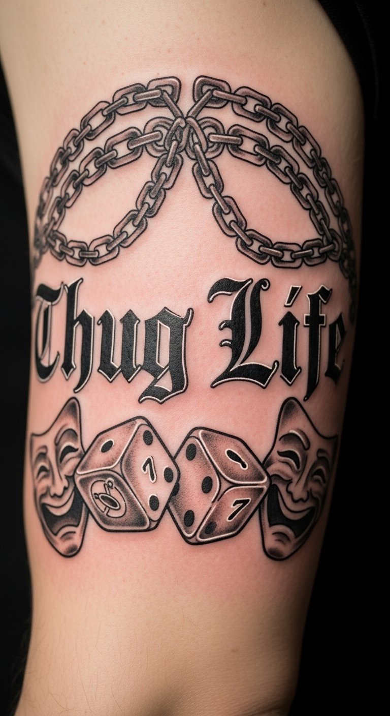 Tupac’s “Thug Life” tattoo stands for unity against challenges. Get a simple band around your arm with the phrase in bold script. Use a local artist for under $100. Break it down: sketch the design at home with a pen and paper. Add personal touches like stars for extra meaning. This idea works on any budget. Try a temporary tattoo first from online stores. It shows strength in everyday life. Pick black ink for a classic look. Place it where you see it daily. This tattoo idea honors Tupac’s message without much cost.