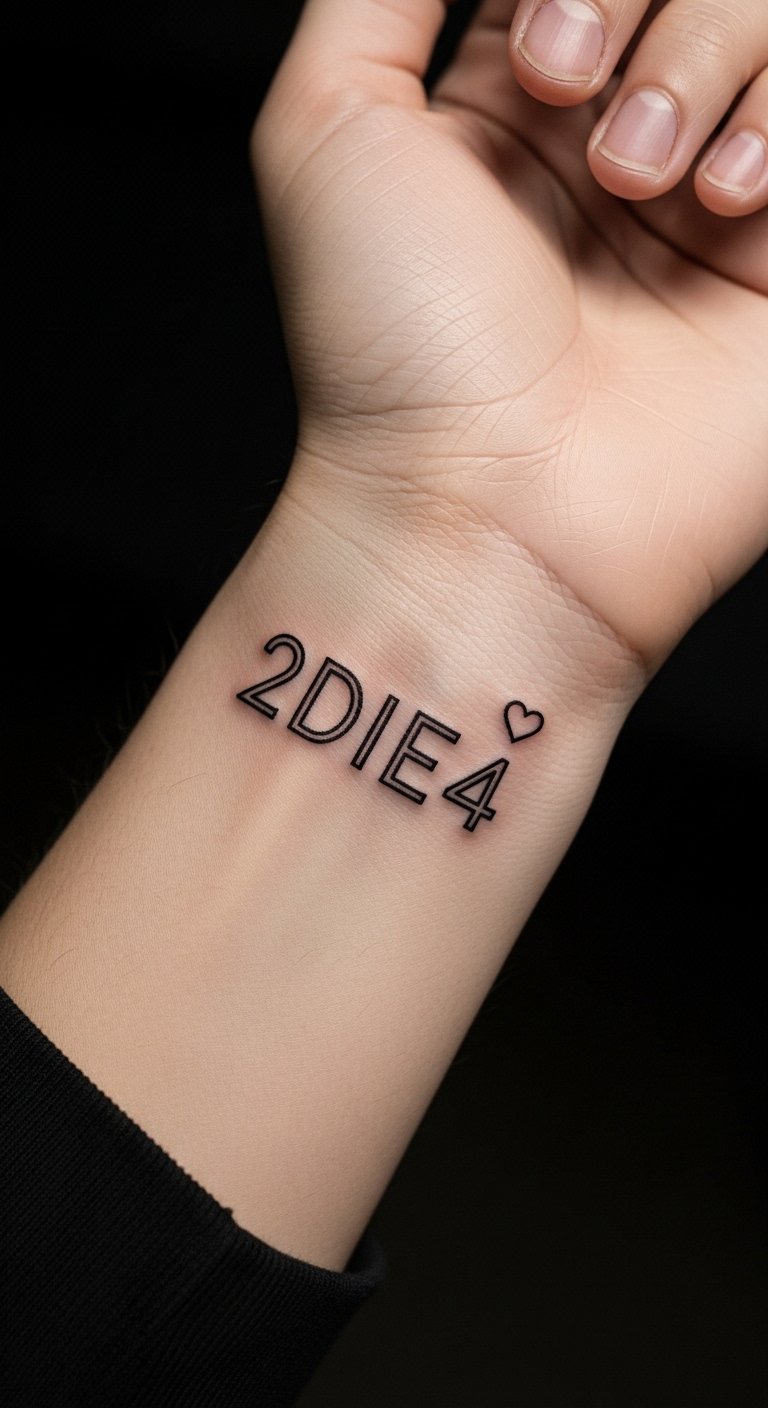 Tupac’s “2DIE4” means deep loyalty. Choose numeric text on your finger. Find artists for $40–100. Draw numbers at home for fun. Mix in a small symbol for flair. Online generators provide free options. Start with temporary ink. This idea is simple and cheap. Use fine lines for elegance. It’s a quick personal statement.