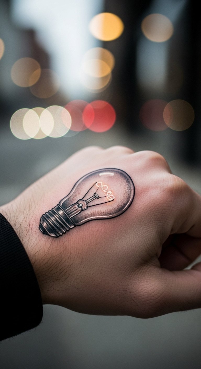 Tupac’s drive inspires this. Choose a bulb on your wrist. Artists at $50–120. Sketch bulbs at home. Add sparks for innovation. Online generators help. Use temporaries. Budget-friendly motivation.