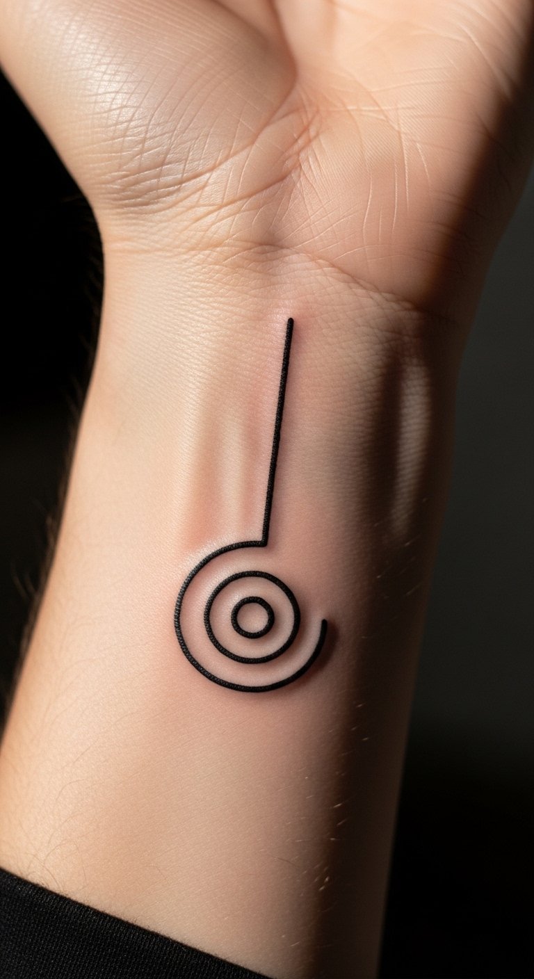 Keep it minimalist on your forearm for everyday wear. Just the core spiral and line work. This design is timeless. Find options under $60 at walk-in spots. Sketch the basic form on your arm with pen. Wipe it off easily. Choose a straight spot. Use string to outline at home. Get temporary designs for $5. Wear them to decide. Share photos for opinions.
