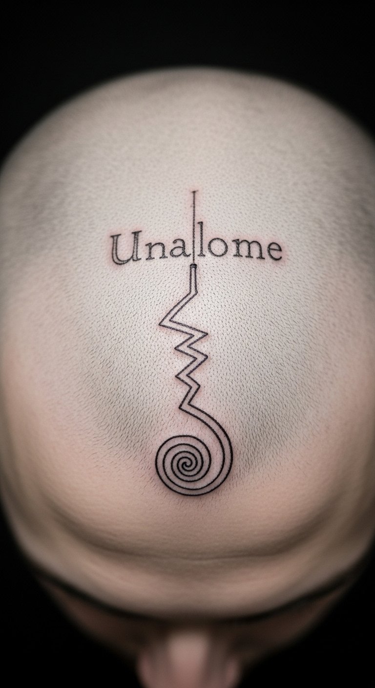 Place Unalome on the crown for enlightenment vibes. This spot symbolizes the peak of the journey. It’s a bold choice. Look for experienced artists at $120. Trace the design on a bald cap first. Use markers for trials. Keep it small for comfort. Practice on a doll head. Buy fake tattoo products for $9. Test the placement carefully. Talk to professionals for pointers.