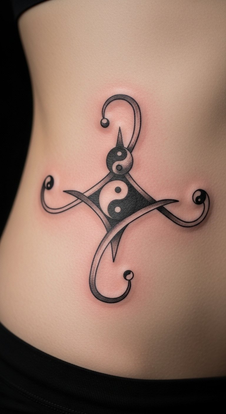 Incorporate Yin-Yang with Unalome for balance. The symbols represent harmony. This design is thoughtful. Find balanced artists for $100. Draw the dual shapes. Use simple circles. Locate on your side. Practice with coins. Get Yin-Yang temporaries for $11. Test placement. Exchange thoughts.