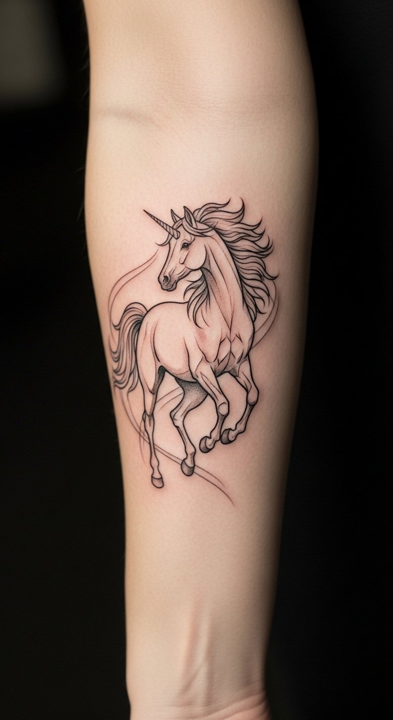 A forearm graceful unicorn focuses on smooth, flowing lines. Imagine a unicorn in a elegant pose. It’s ideal for arm placement. Search online for options; about $150. Sketch flowing shapes on paper for a DIY idea. This makes preparation easy. Put it on your forearm for daily view. Keep it simple to save money. You’ll enjoy its graceful appeal.