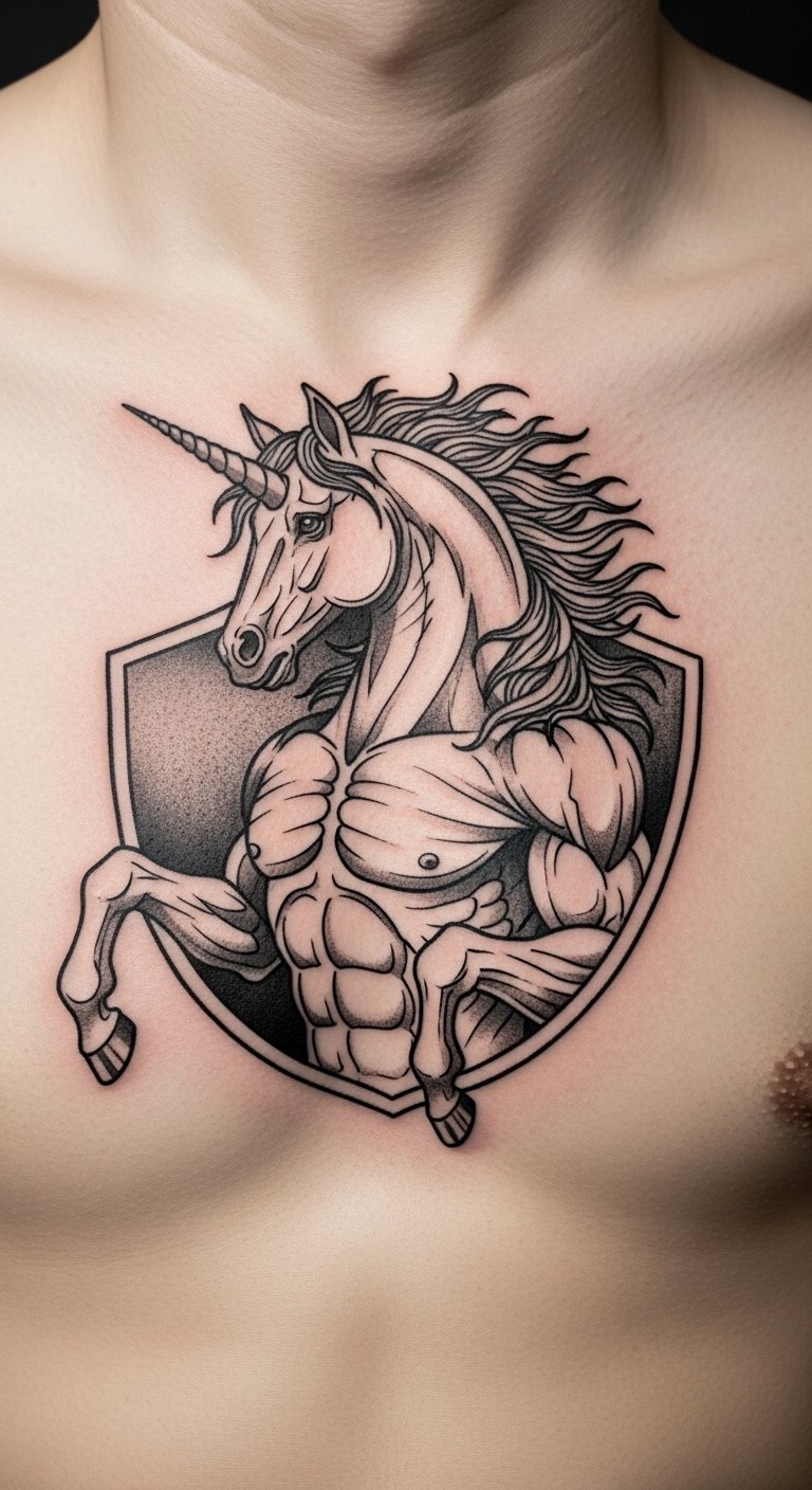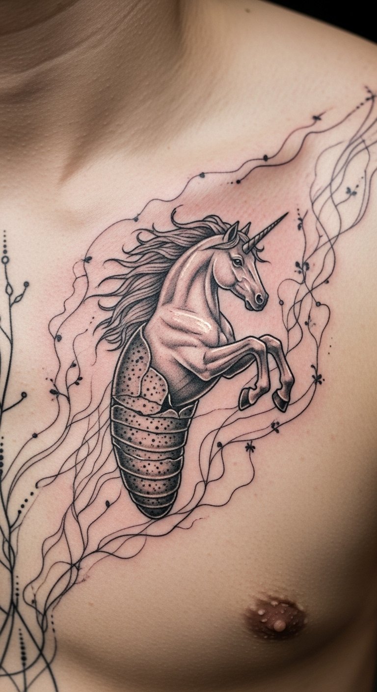 A chest guardian unicorn symbolizes protection and strength. Think of a unicorn standing guard. It’s great for meaningful ink. Look for artists in your area; around $200. Draw protective symbols at home for inspiration. This DIY method helps customize. Place it on your chest for impact. Use bold designs for longevity. Your tattoo will serve as a personal shield.