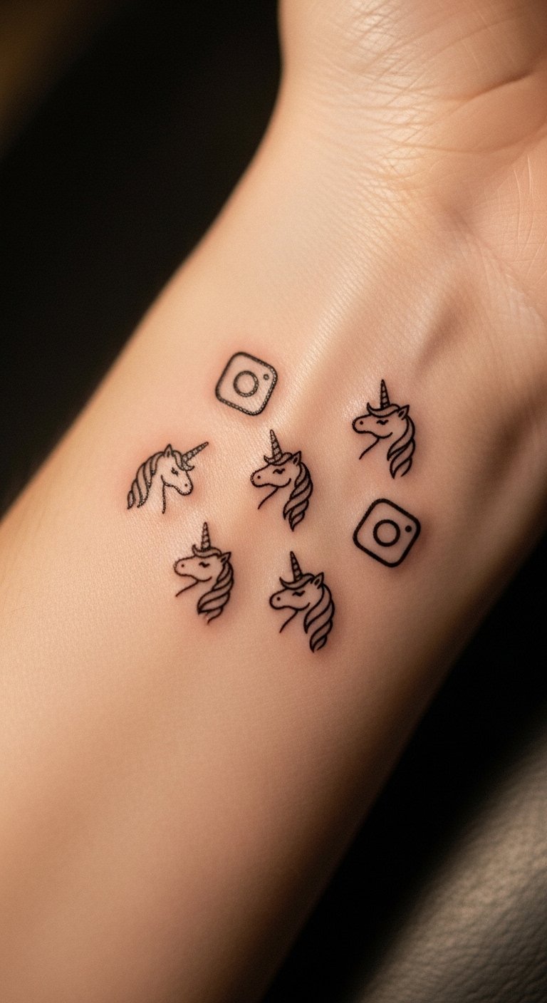 Social media inspired micro tattoos feature tiny unicorns in groups. Think of small sets for a trendy look. It’s popular among friends. Find quick sessions; under $100. Use phone apps to design micros at home. This DIY tool is free. Put them on your wrist for style. Keep them simple for ease. Your tattoos will trend online.