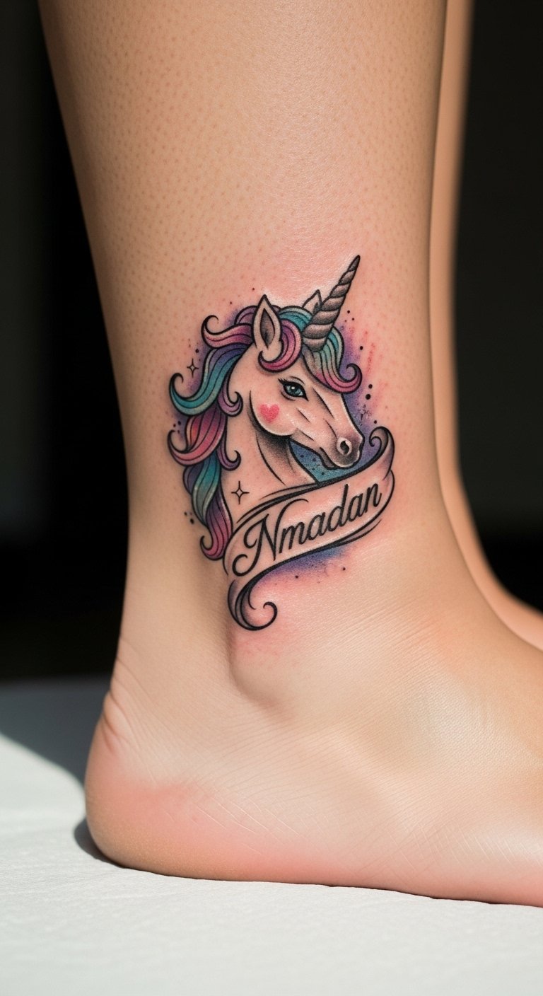 A custom personalized unicorn lets you add personal details. Imagine your name in the design. It’s all about you. Talk to artists directly; costs around $170. Brainstorm ideas with family drawings at home. This makes it special. Place it on your ankle for discretion. Tailor elements to fit. Your tattoo will be truly yours.